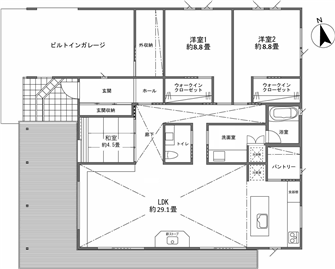 駐車場 | ビルトインガレージ(1台)、カースペース(1台) | |