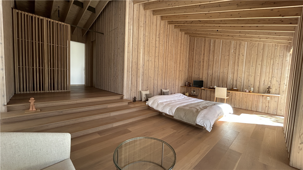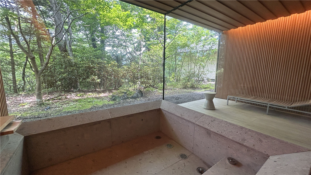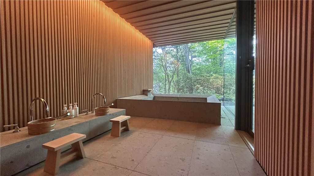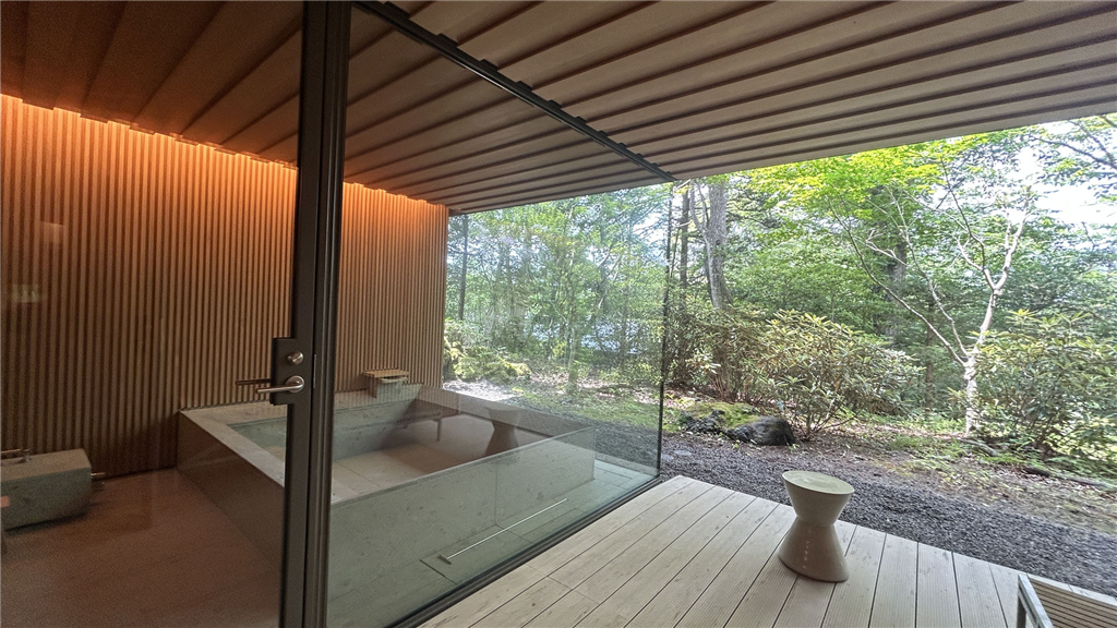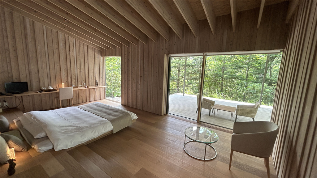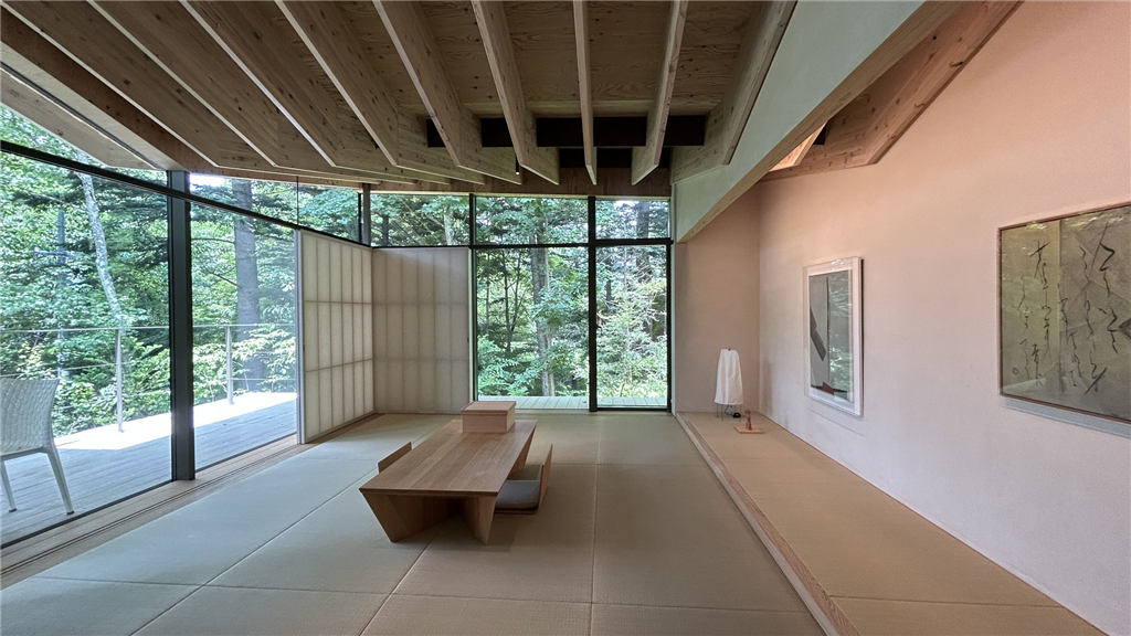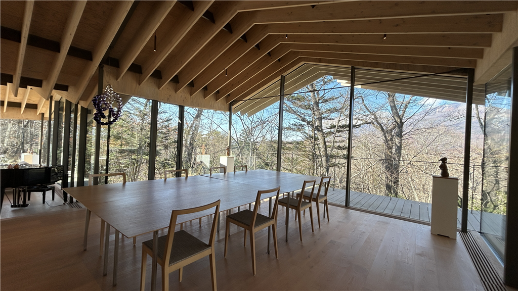 星野リゾート別荘地内、浅間山を望む大浴場付き母屋と別棟3棟から成るゲストハウス。