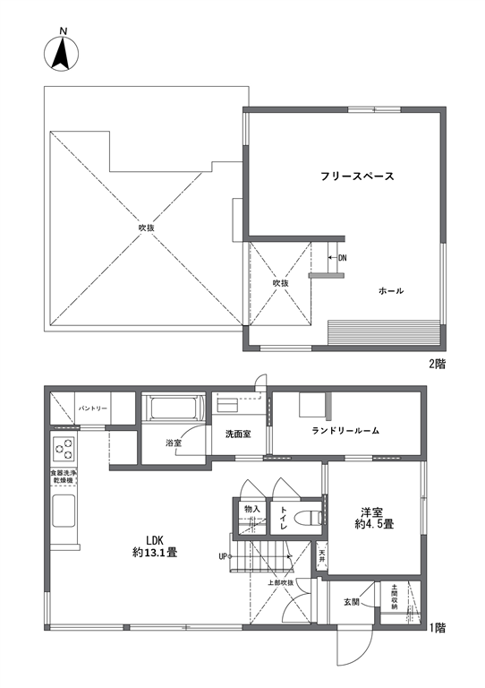 【新築、2025年6月完成】2階建1LDK+フリースペースの一戸建て。