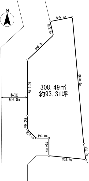 | 接面道路 | 西側約6.0m(私道)舗装 | |