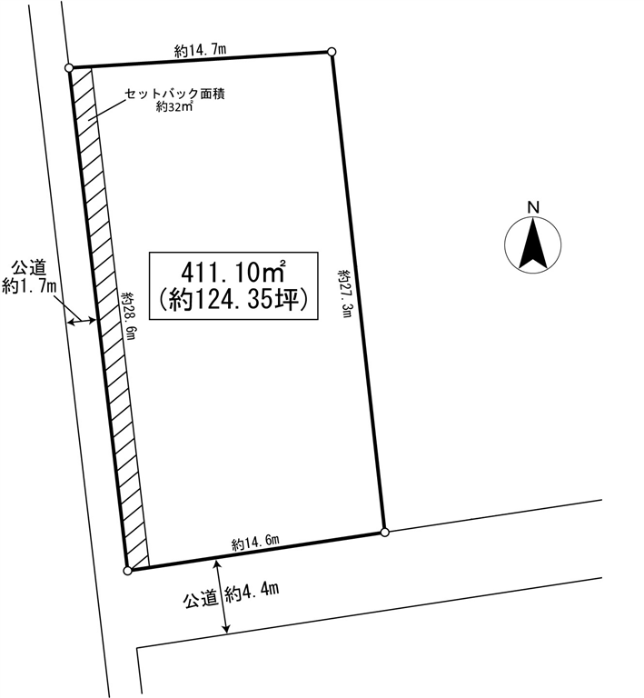 | セットバック有 | 約32m2(※セットバック面積については、公図縮尺による概算面積として表記しているため、建築確認申請時の面積とは異なる場合があります。) | |
