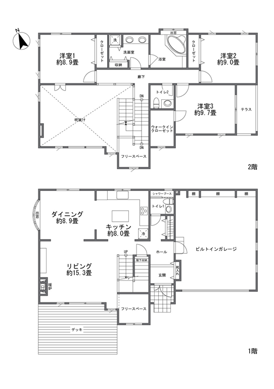 - 間取り:3LDK+ビルトインガレージ