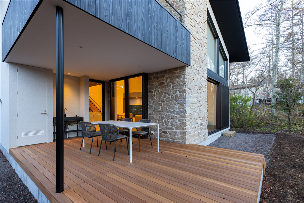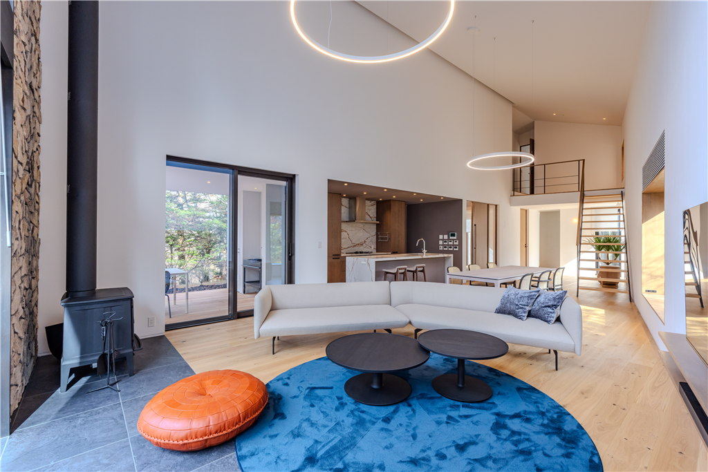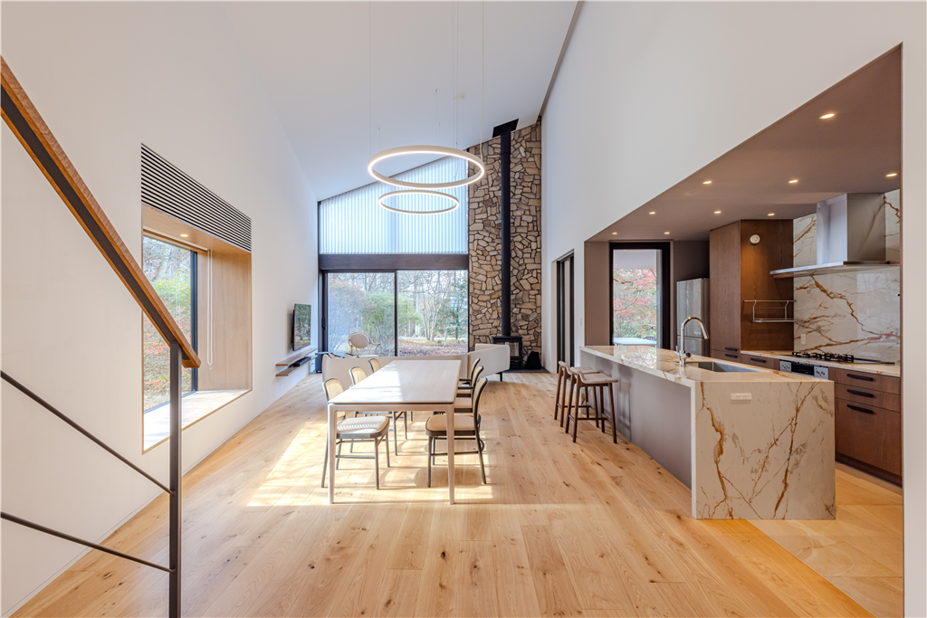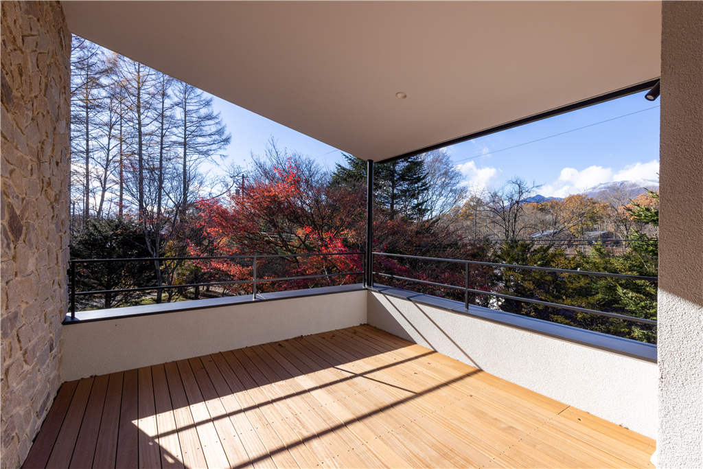 各居室に配置されたテラス、バルコニーでは軽井沢の自然をお楽しみいただけます。2階まで吹き抜けたLDKも魅力です。