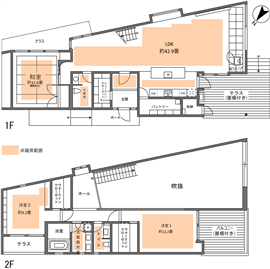 | 建物 | 延床面積 | (公簿)199.11m2(60.23坪) 1階面積/124.60m2(37.69坪) 2階面積/74.51m2(22.53坪) |