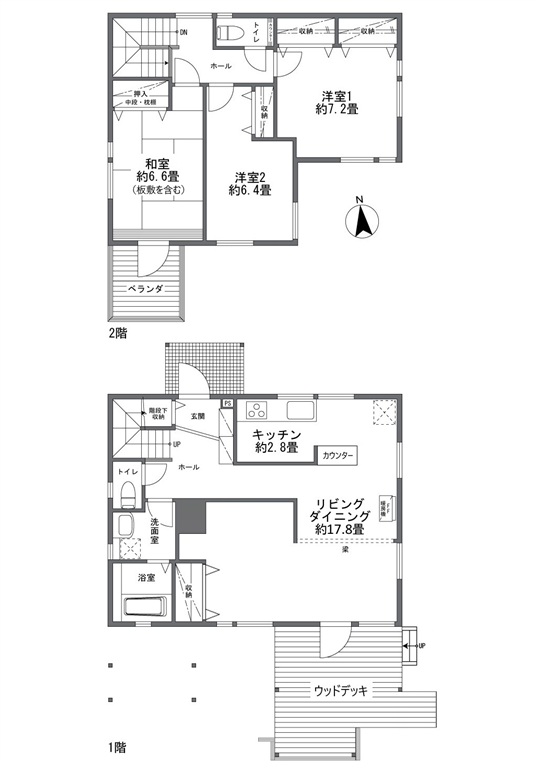 | 建物 | 延床面積 | (公簿)106.97m2(32.35坪) 1階面積/57.25m2(17.31坪) 2階面積/49.72m2(15.04坪) |