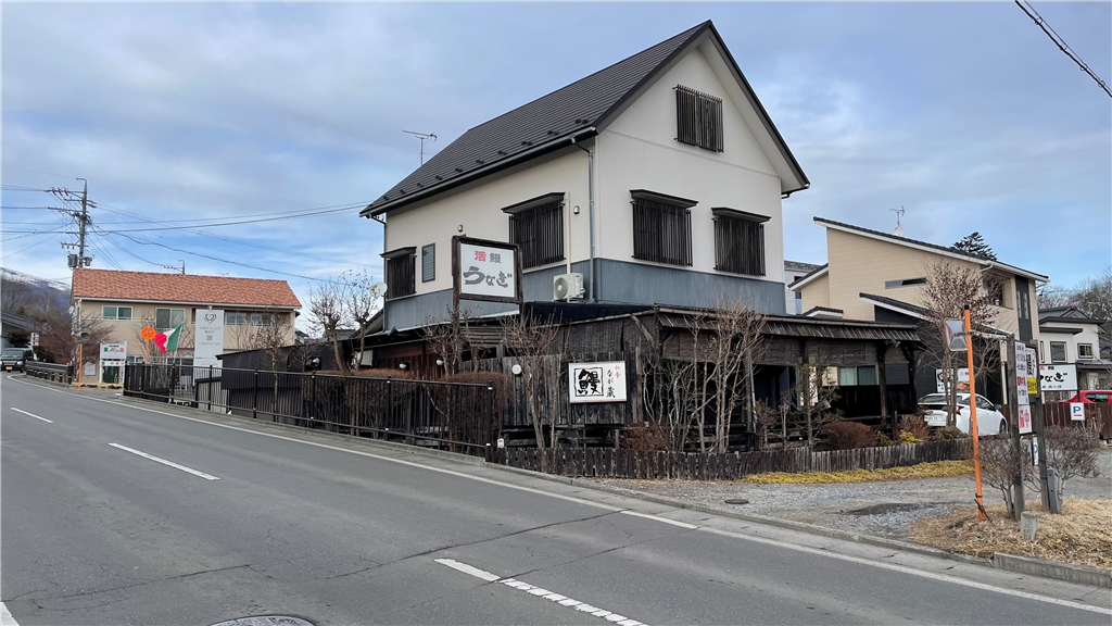 信濃追分駅より徒歩約5分(約350m)に建つ店舗付物件。