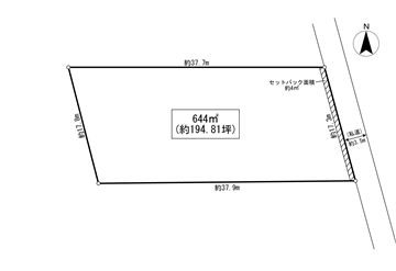 | セットバック有 | 約4m2(※セットバック面積については、公図縮尺による概算面積として表記しているため、建築確認申請時の面積とは異なる場合があります。) | |