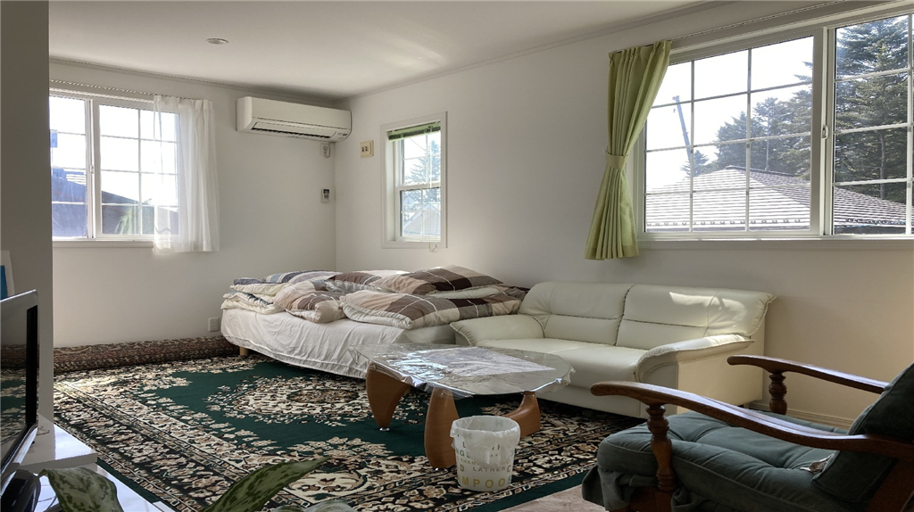 軽井沢駅まで徒歩約8分(600m)、各居室は二面開口で風通しの良い一戸建てです。