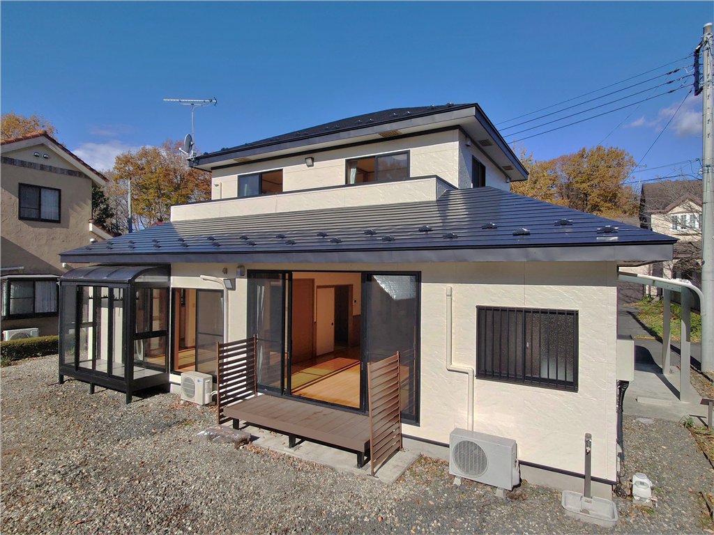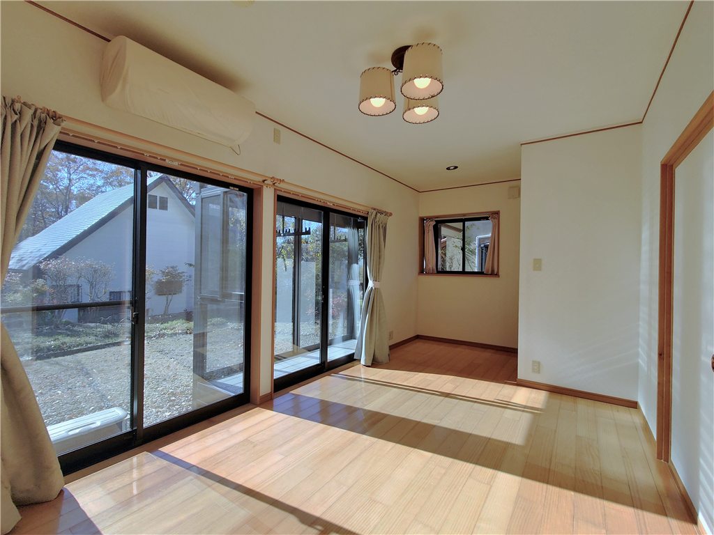 標高約498mに位置。長期滞在にもご利用可能で平坦な敷地に建つ木造建築の一戸建て。