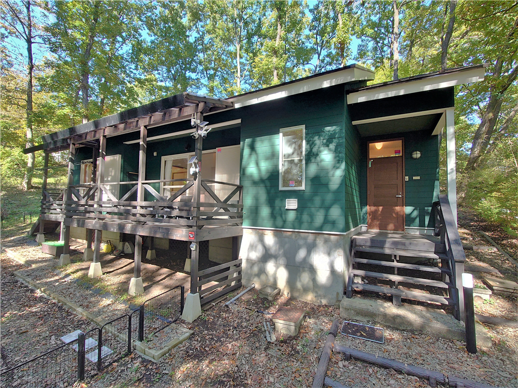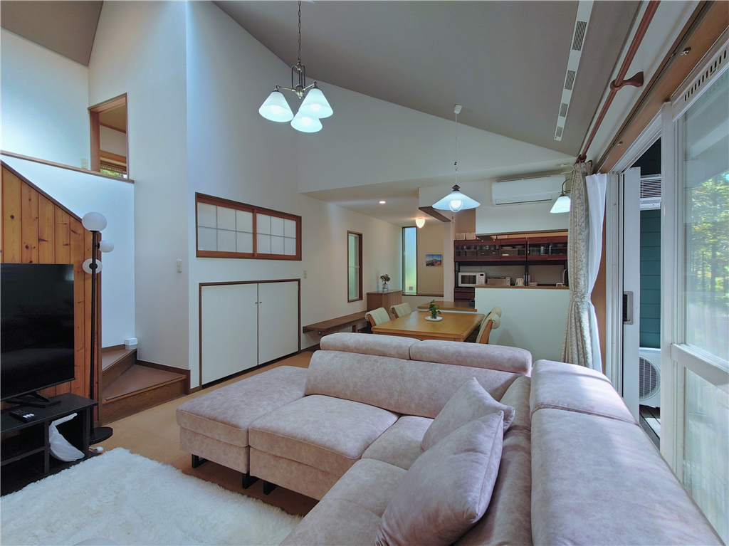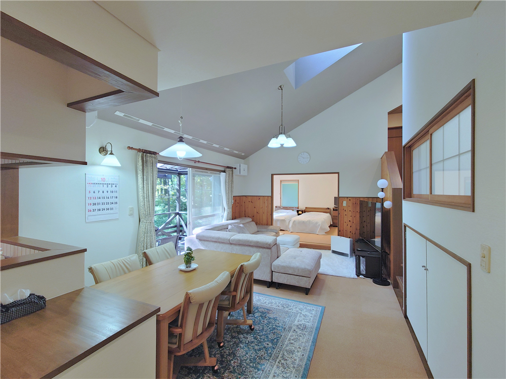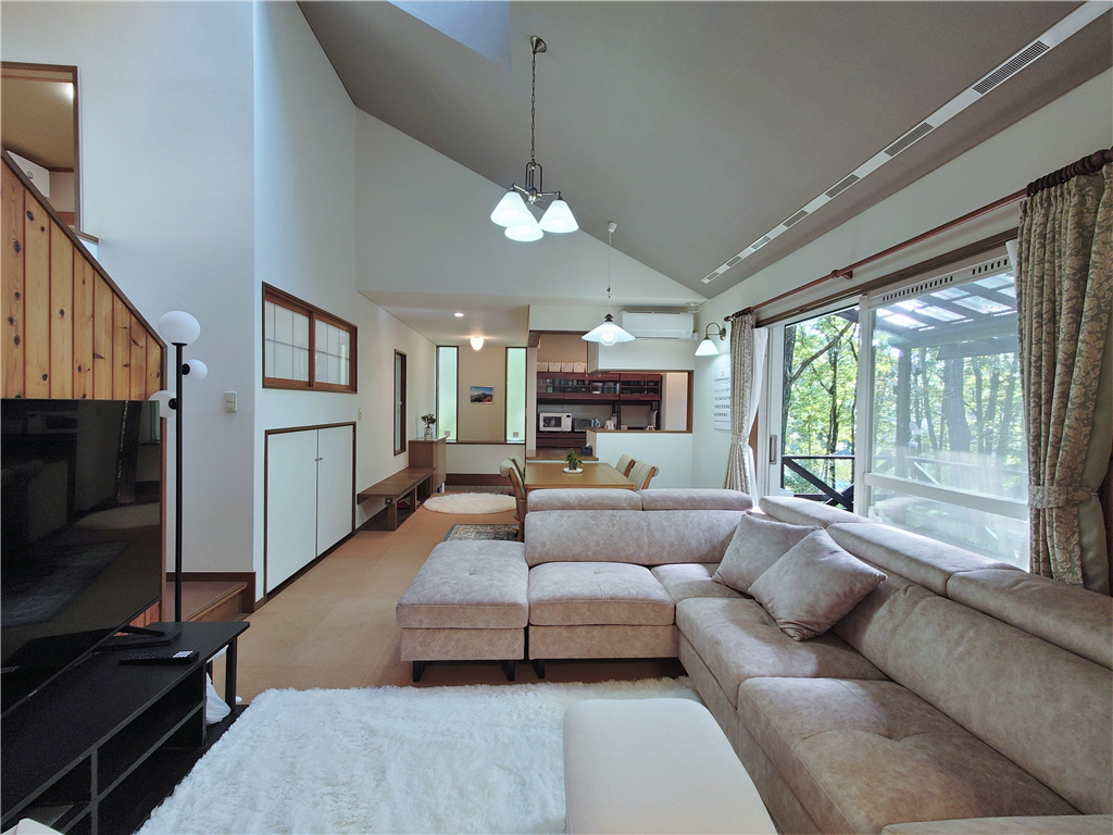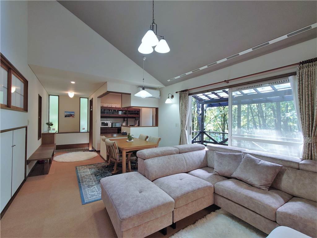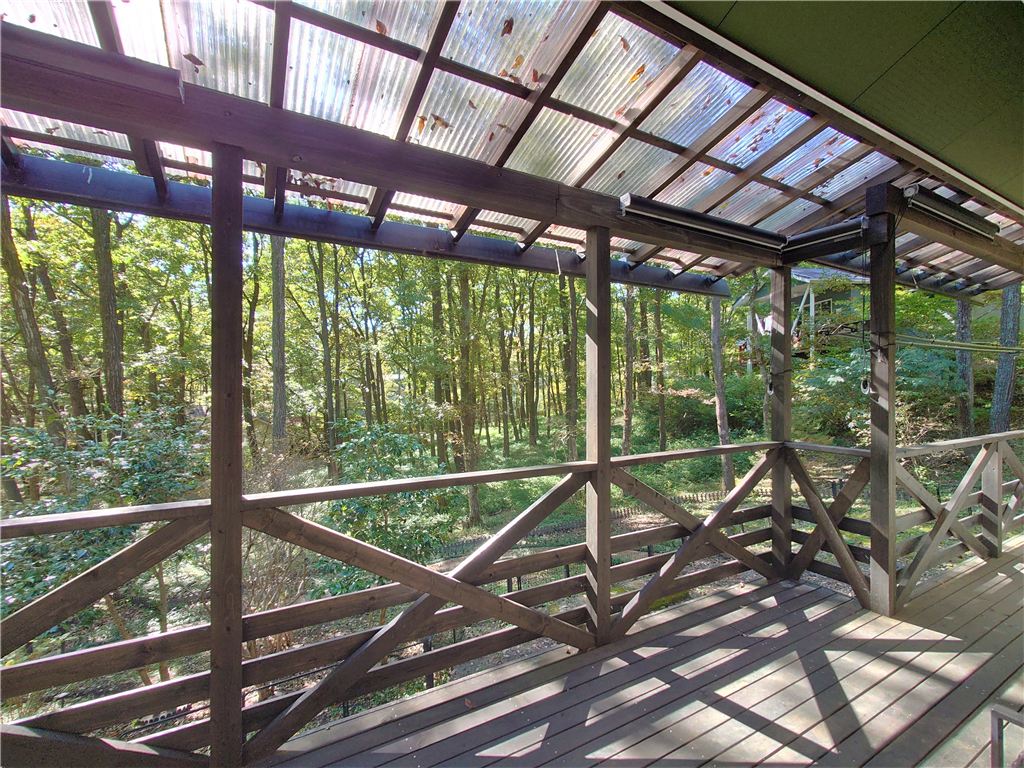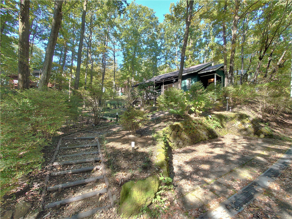 ウッドデッキより樹林を望み、四季折々の風景を愉しむ一戸建て別荘です。