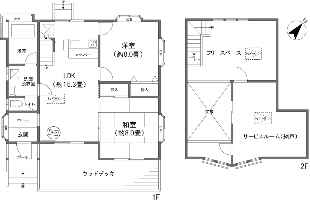 - 間取り:2LDK+サービスルーム(納戸)+フリースペース