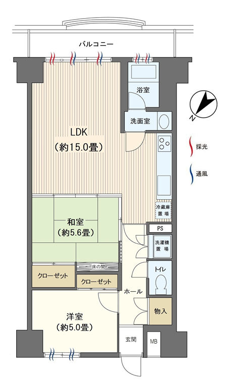 - 間取り:2LDK 専有面積:59.40m2 階/階建:5階/13階建