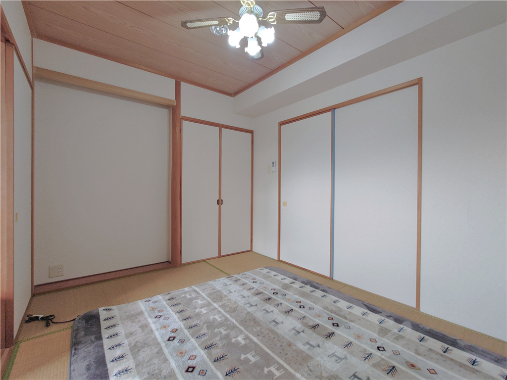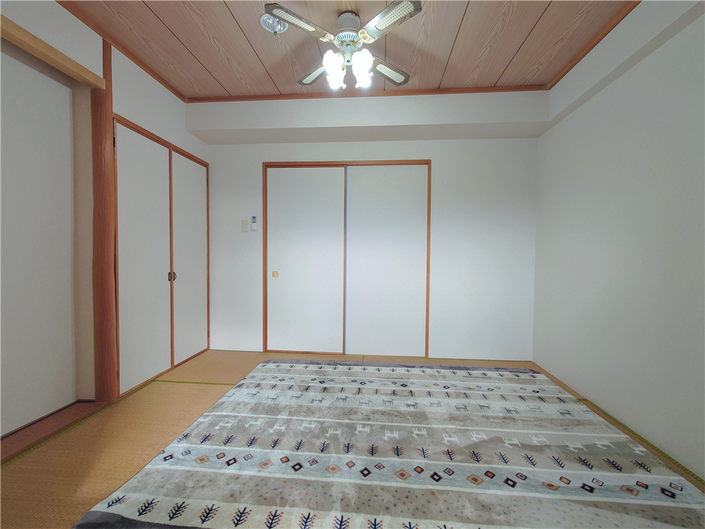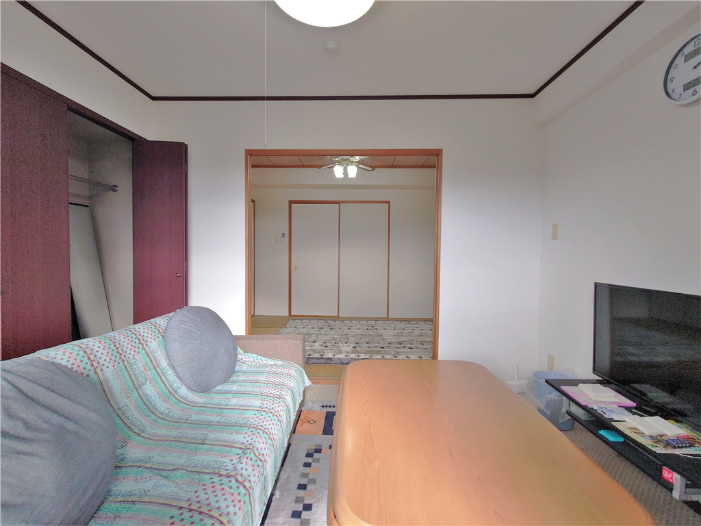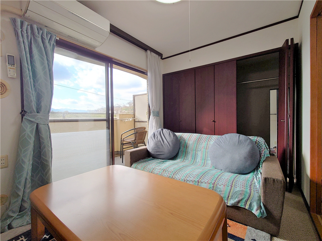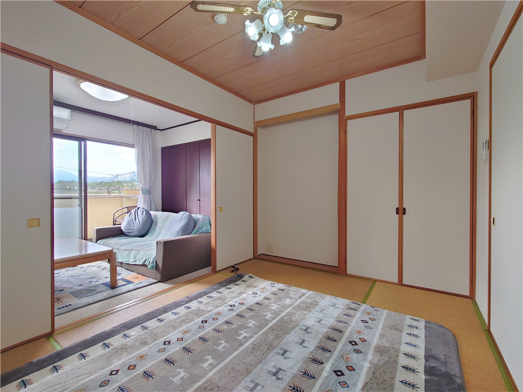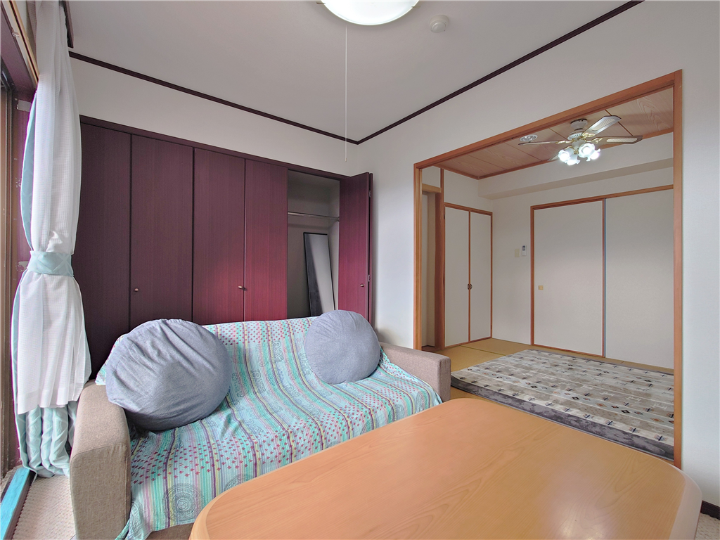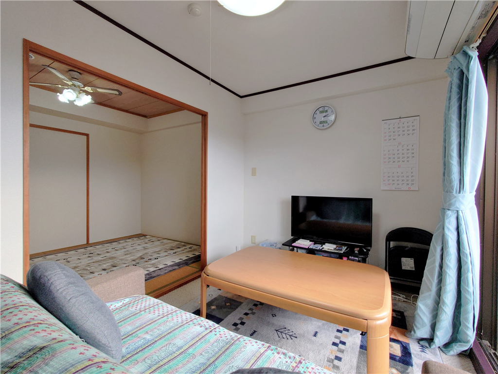 南西側バルコニー付き、和室1・洋室1部屋を有する2Kタイプのお部屋です。