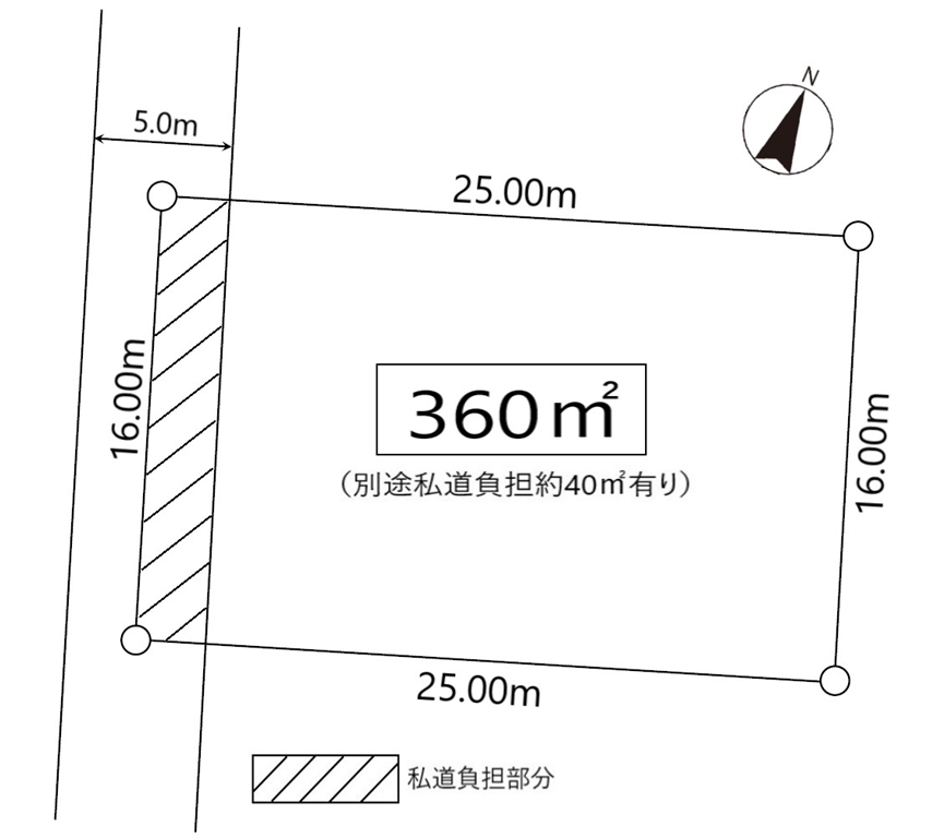| 面積 | (公簿)360m2(108.90坪) 私道面積(別途負担)/40m2 | |