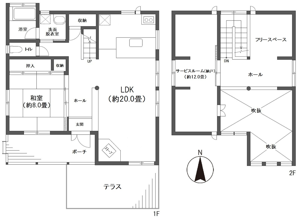 - 間取り:1LDK+サービスルーム(納戸)+フリースペース