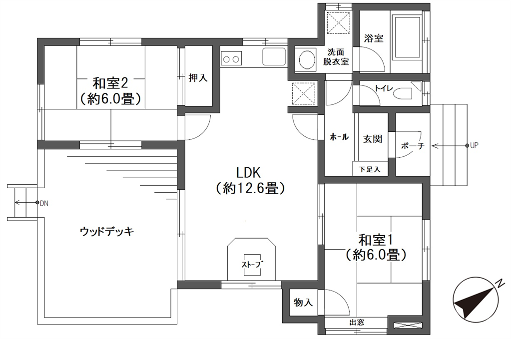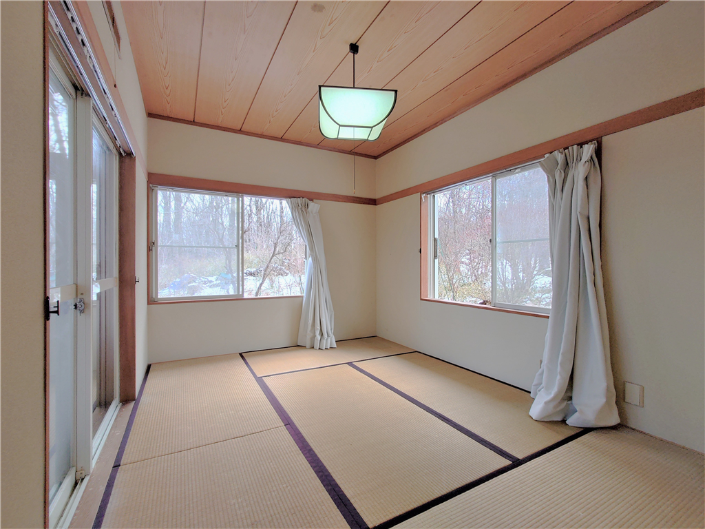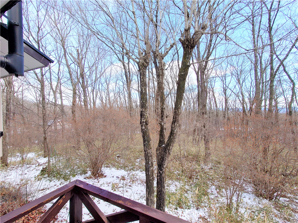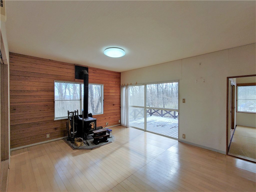 LDKに薪ストーブがあり、自然豊かな高台に建つ平家建て住戸です。