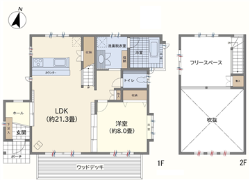 | 建物 | 延床面積 | (公簿)90.67m2(27.42坪) 1階面積/74.11m2(22.41坪) 2階面積/16.56m2(5.00坪) |