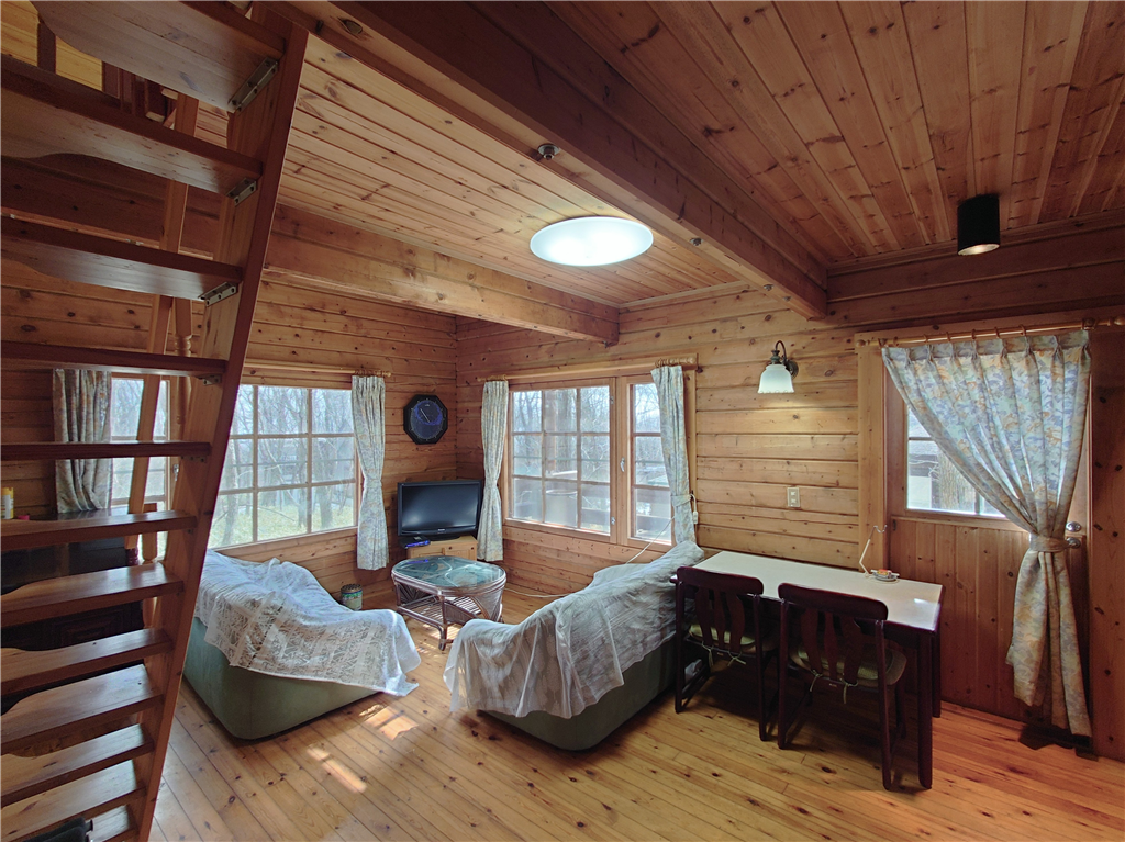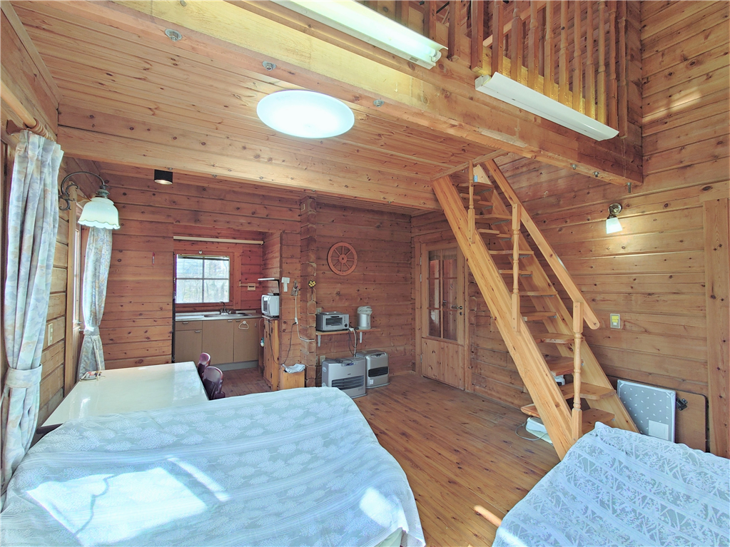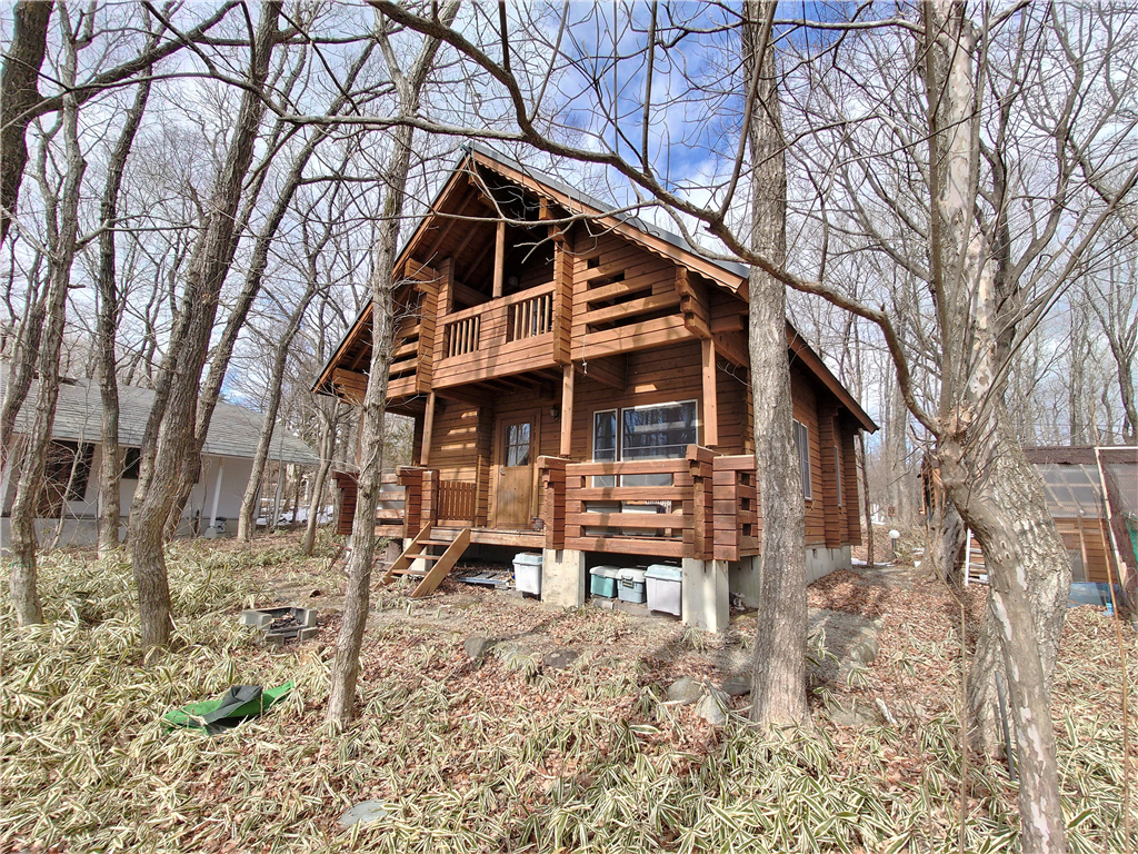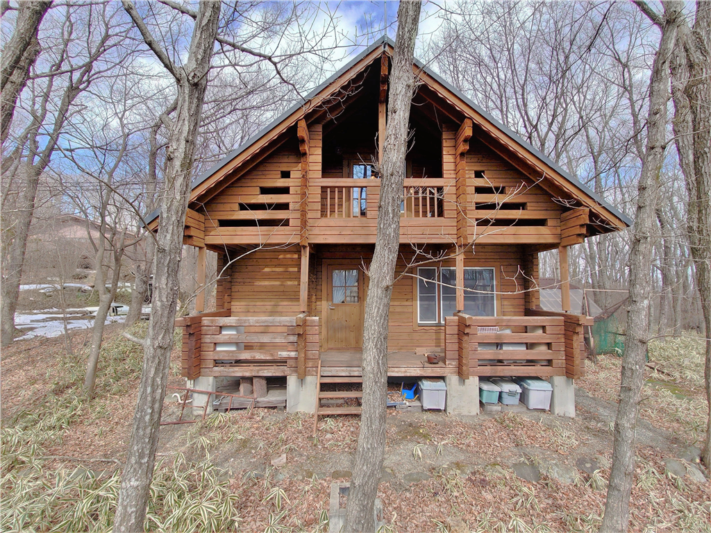 公営水道引き込み済。平坦な敷地に建つ、マシンカットのログハウスです。