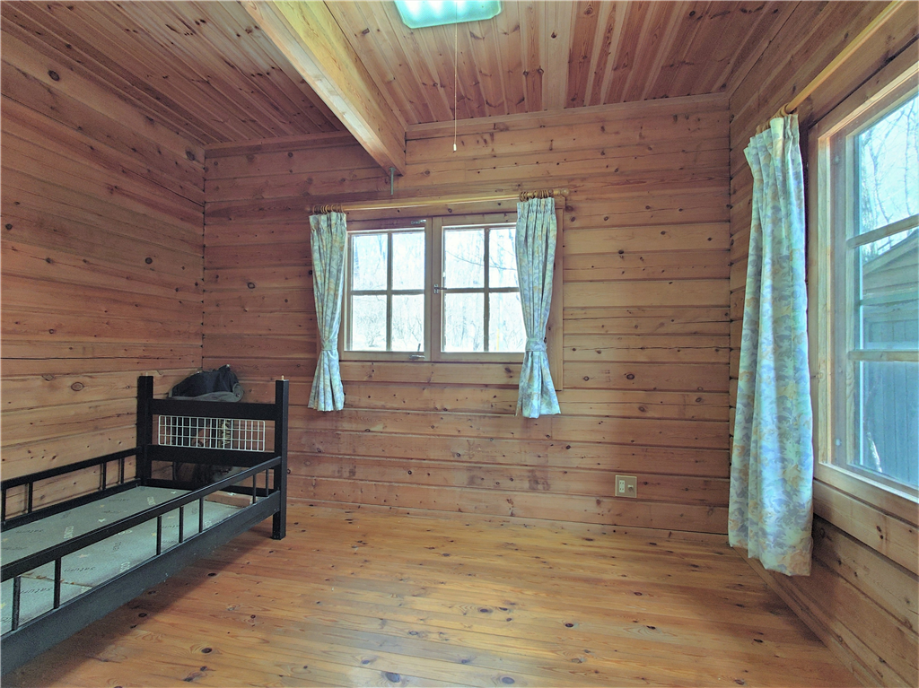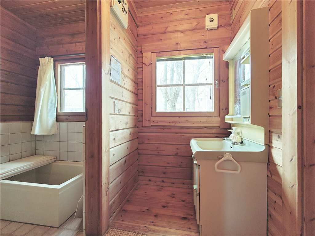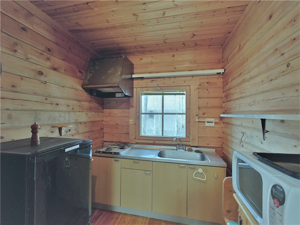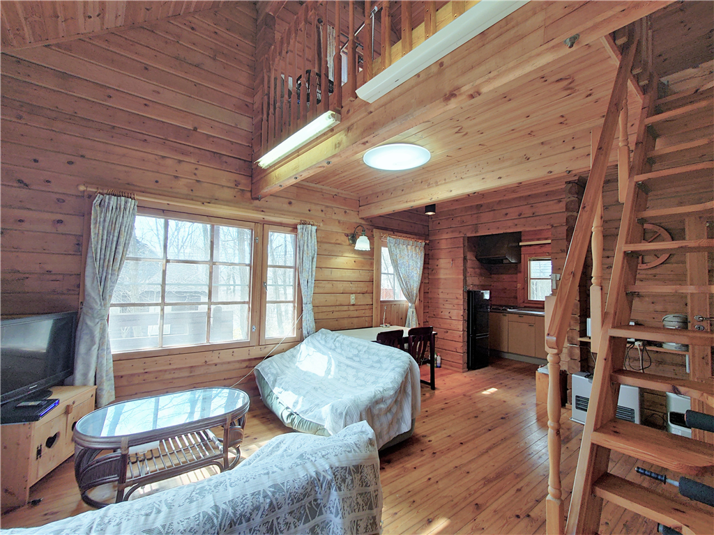 公営水道引き込み済。平坦な敷地に建つ、マシンカットのログハウスです。
