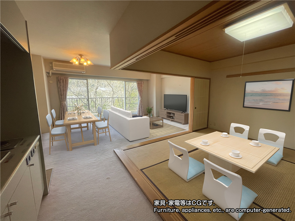 | 注記 | ※画像に配置された家具・家電等はCGです。販売対象ではありません。 ※リフォーム・補修等内容は別紙「リフォーム・補修等工事説明書」を参照ください(2026年5月下旬完了予定)。 ※温泉詳細はお問合せください。 |