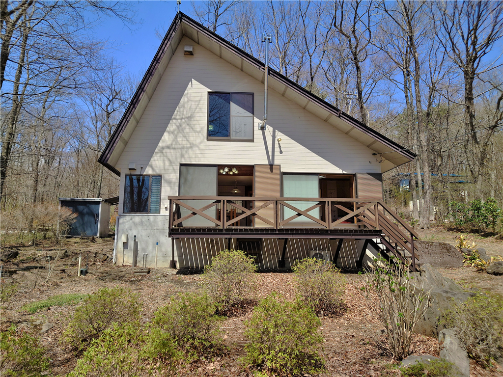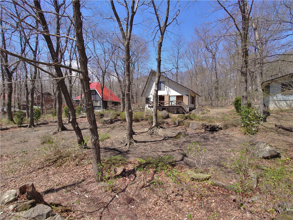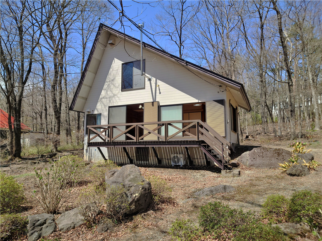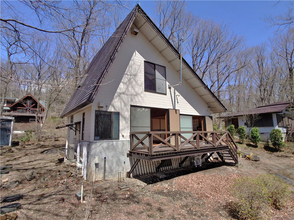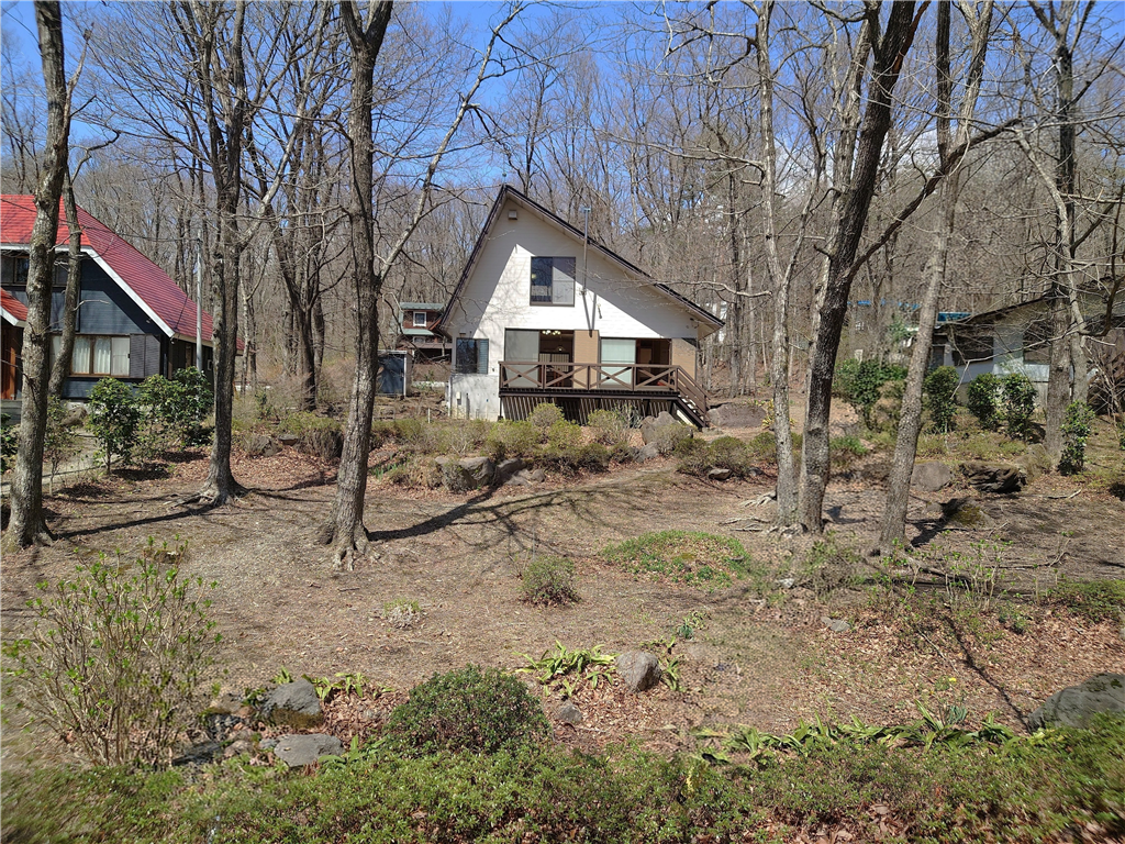 標高約623mに位置。お手入れの行き届いた敷地に建つ、和室2部屋を有する木造建築の一戸建て別荘。