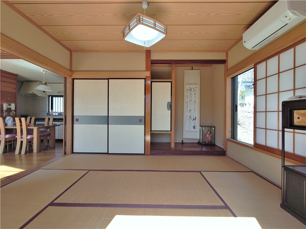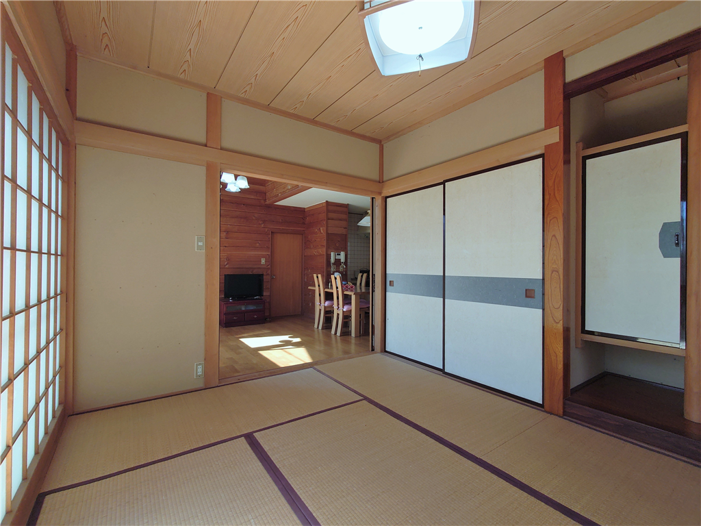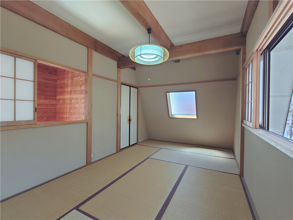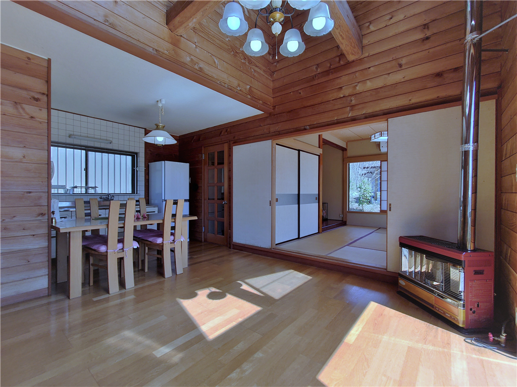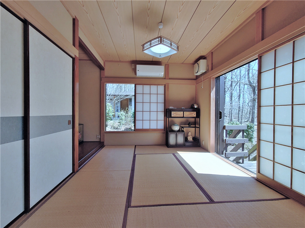 標高約623mに位置。お手入れの行き届いた敷地に建つ、和室2部屋を有する木造建築の一戸建て別荘。