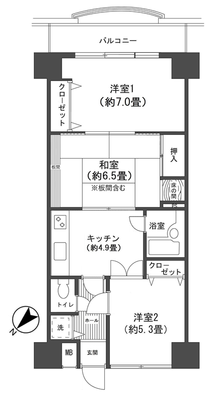 | バルコニー面積 | 6.50m2(1.96坪) | |