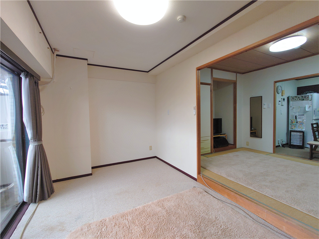 南東側バルコニー付き、和室1・洋室2部屋を有する3Kタイプのお部屋です。
