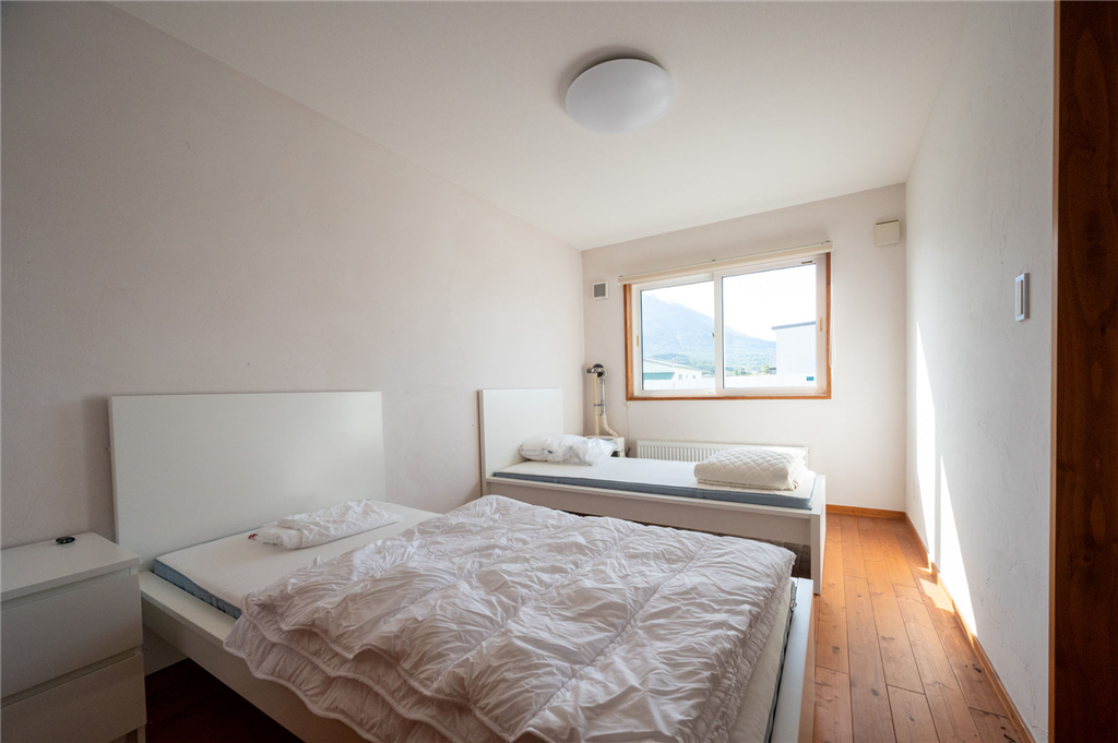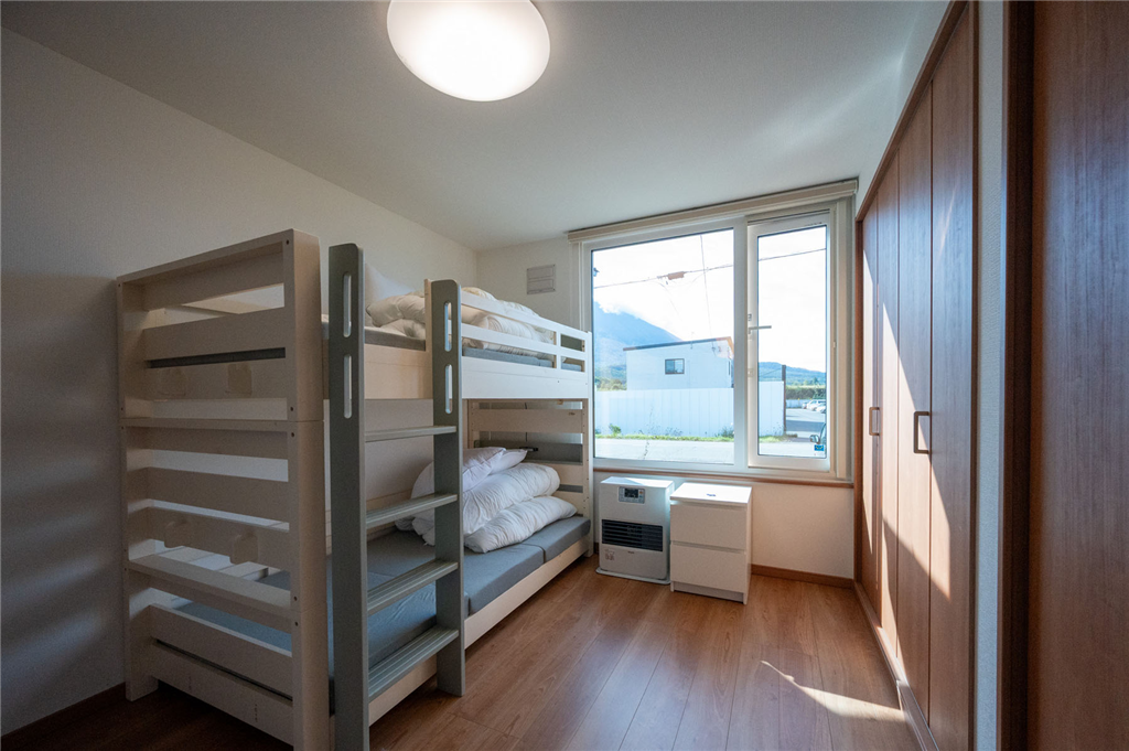倶知安駅から車で約8分(約3.3km)、約791m2の南面に開けた平坦地に建つ、羊蹄山を望む一戸建てです。洋室が7室あり、大家族・法人の保養所にもご利用いただけます。