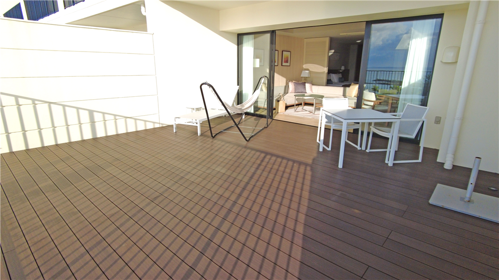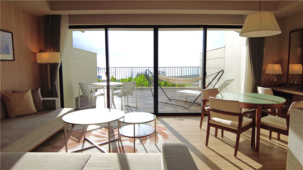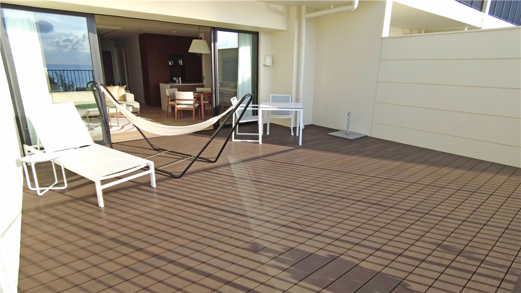 ゆとりある広さのバルコニー(35.10m2)はアウトドアリビングとしても活用可能です。室内からも東シナ海の景観が楽しめます。
