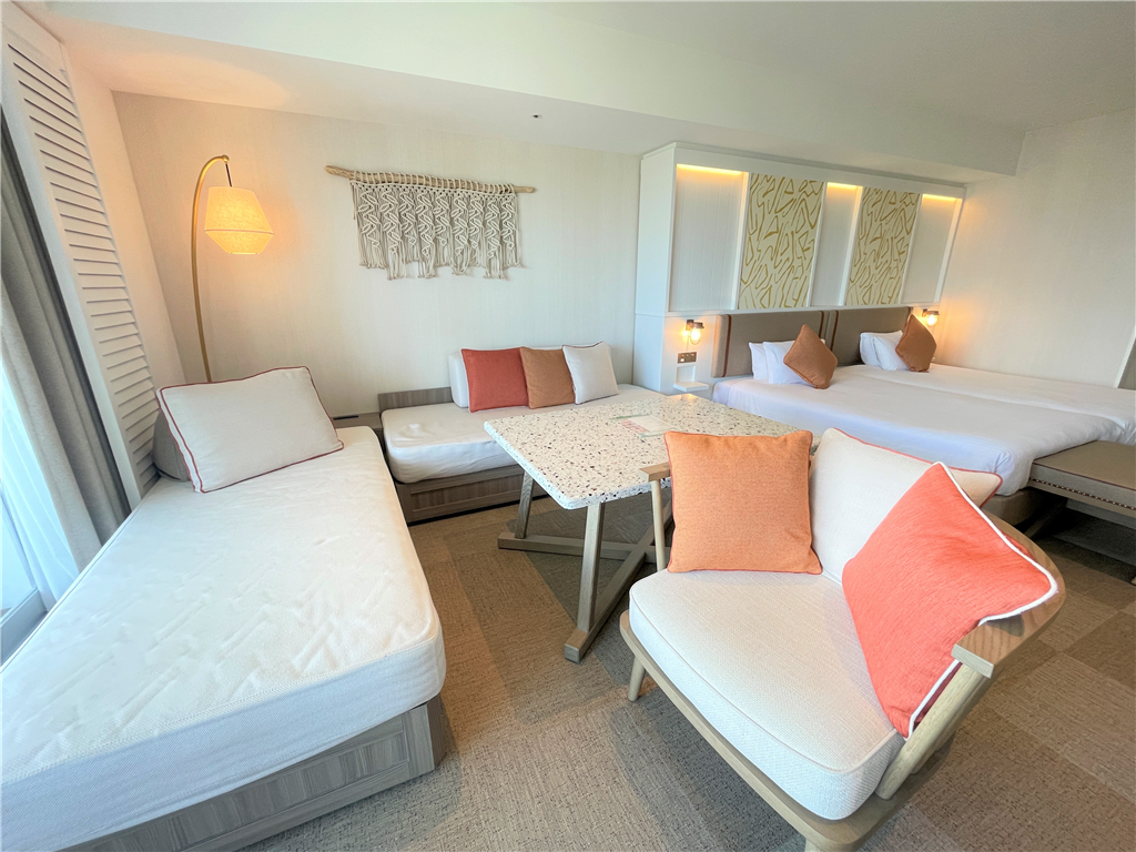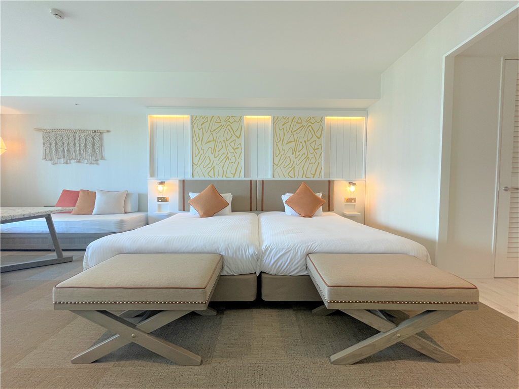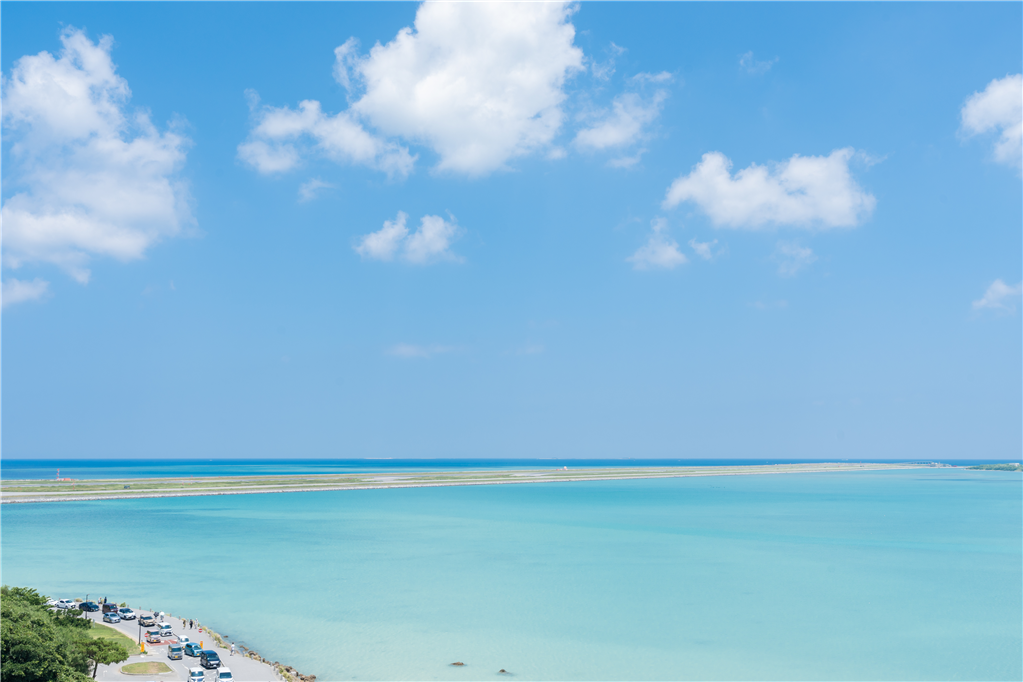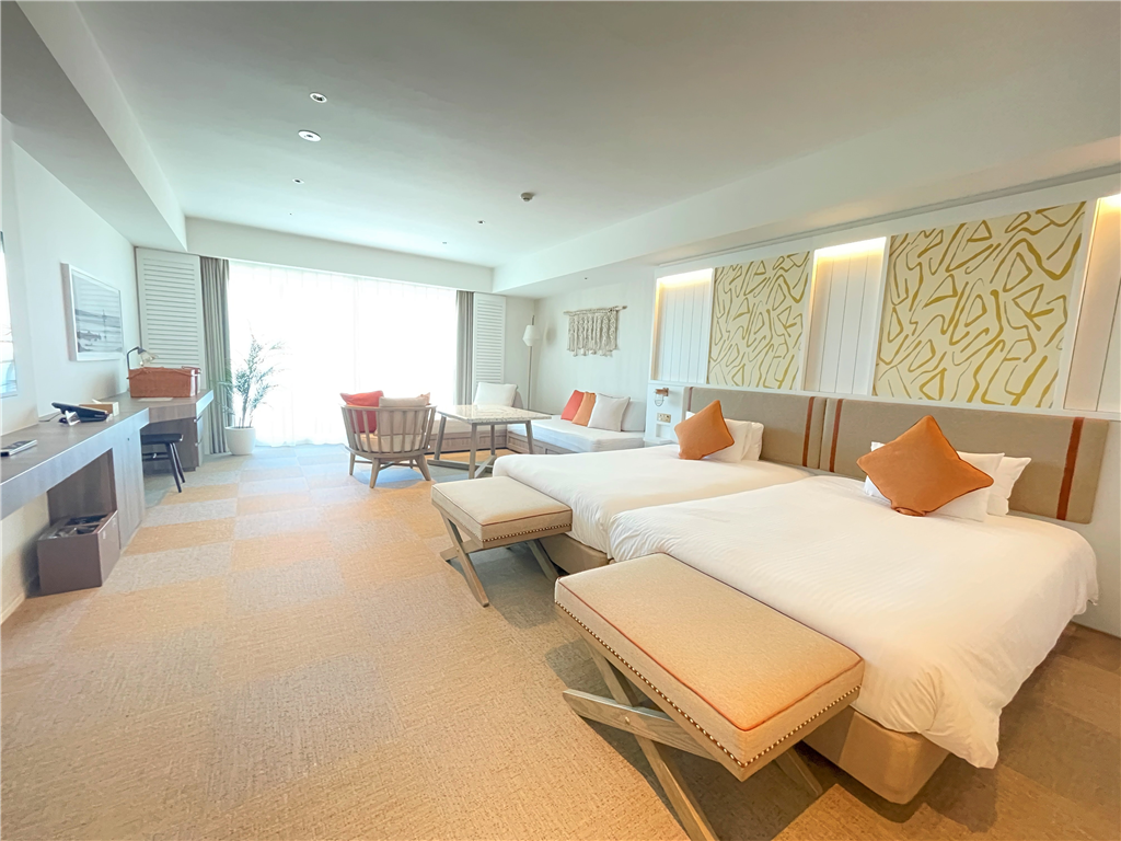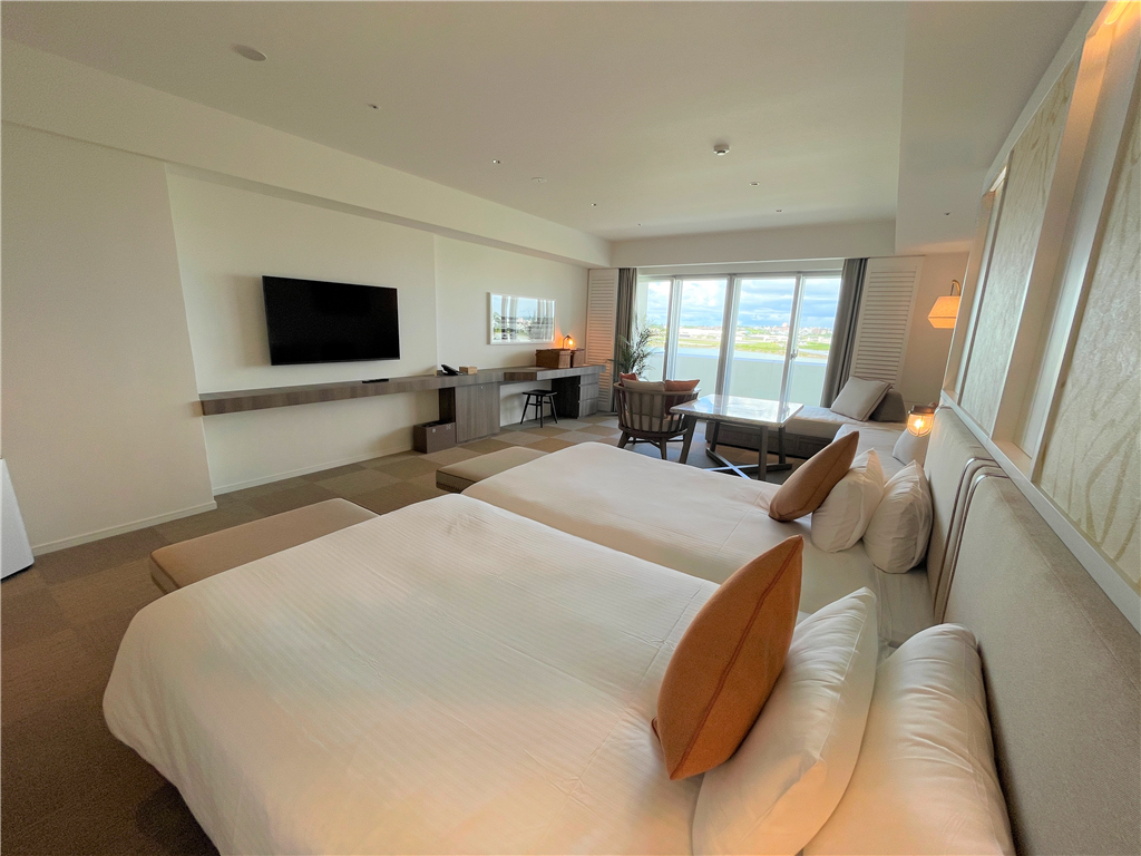 高層階から那覇空港と海を望むオーシャンビューの客室。6階/55.24m2