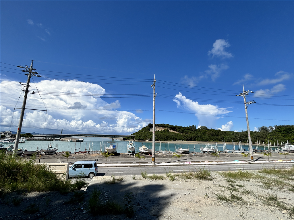 屋慶名湾、海中道路、藪地島を望む413.82坪。道向かいの屋慶名港は県の公営施設で、ボートやジェットスキー等の出し入れは24時間無料!マリンスポーツの拠点等にいかがでしょうか。