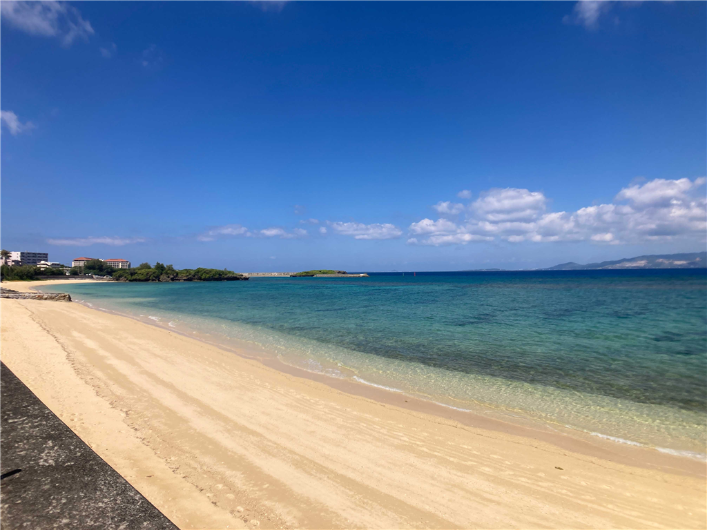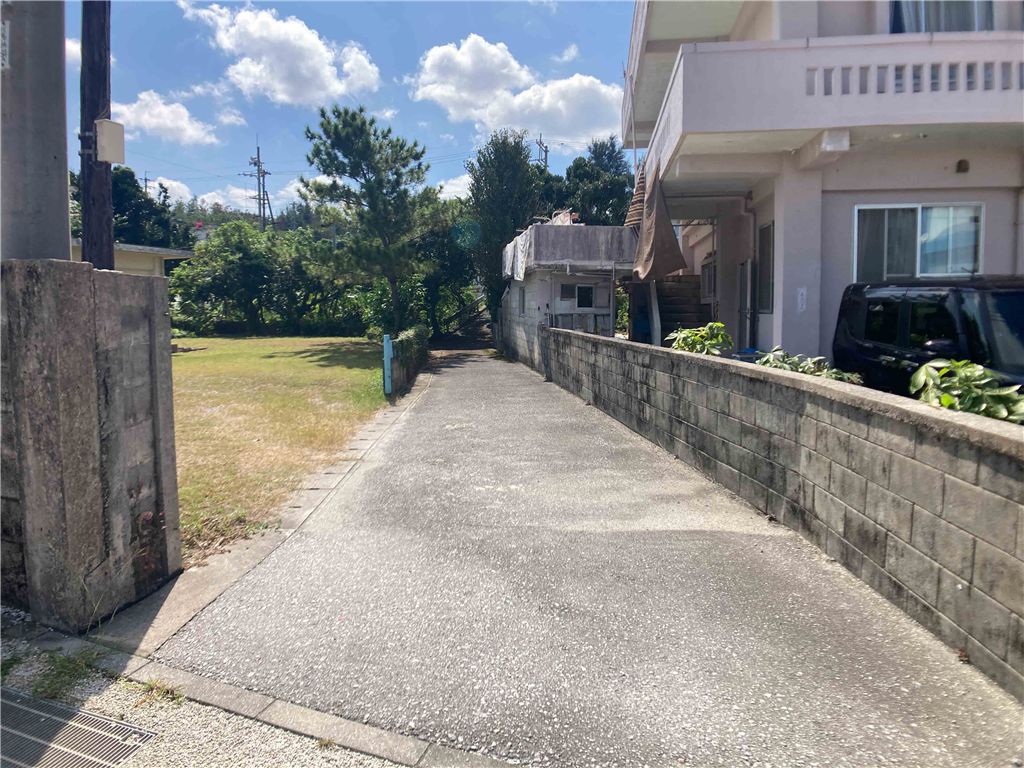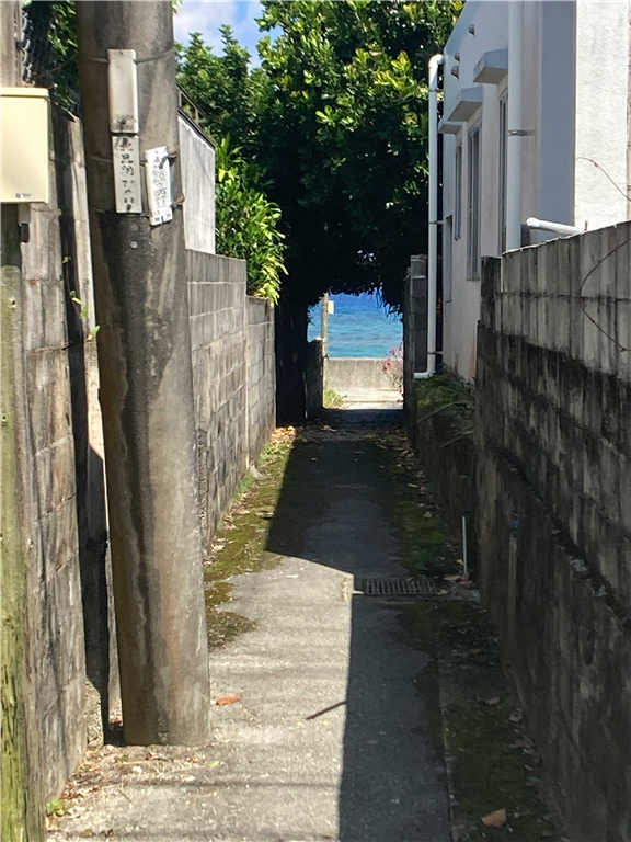 直線距離徒歩1分でビーチに行ける近さ! 間口約25.7m! 恩納村管理の里道の先は、約18mの国道(おんなサンセット海道)。