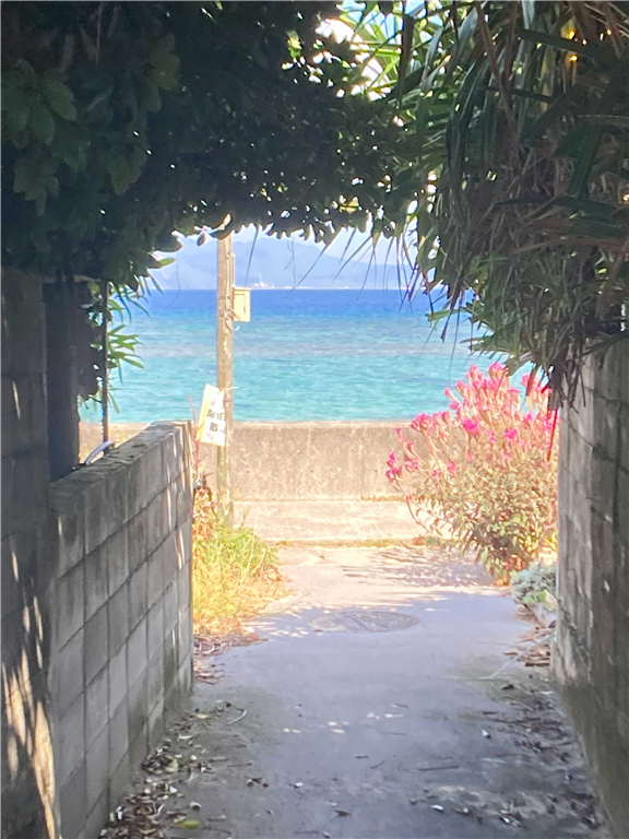 おんなサンセット海道と民家1軒越えると、砂浜が広がるエメラルドグリーンの海!高さ制限13m以下で、建物によってはオーシャンビュー戸建ての建築が可能!
