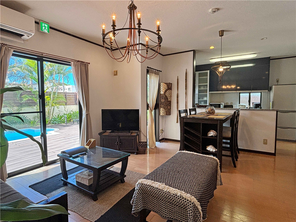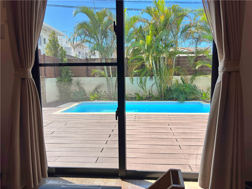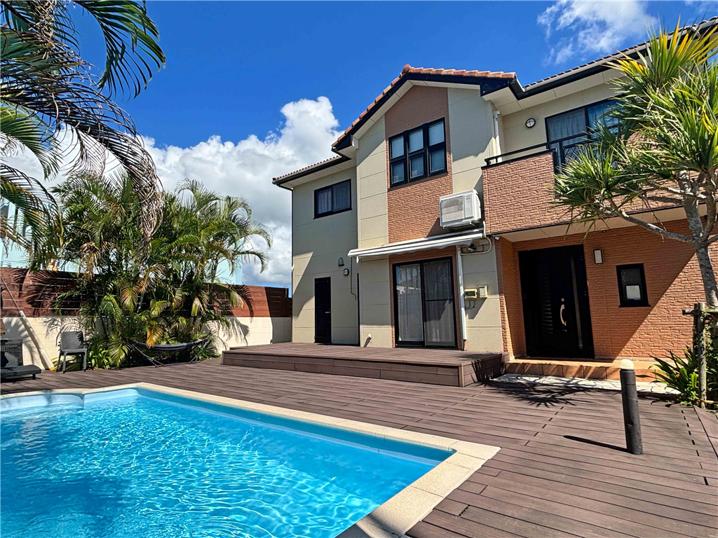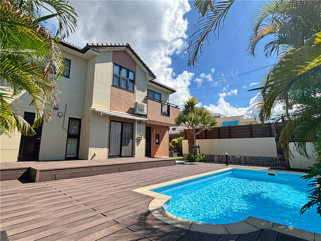 2007年築・プール付きの一戸建て!リビングからそのままウッドデッキ通りプールに入れます!