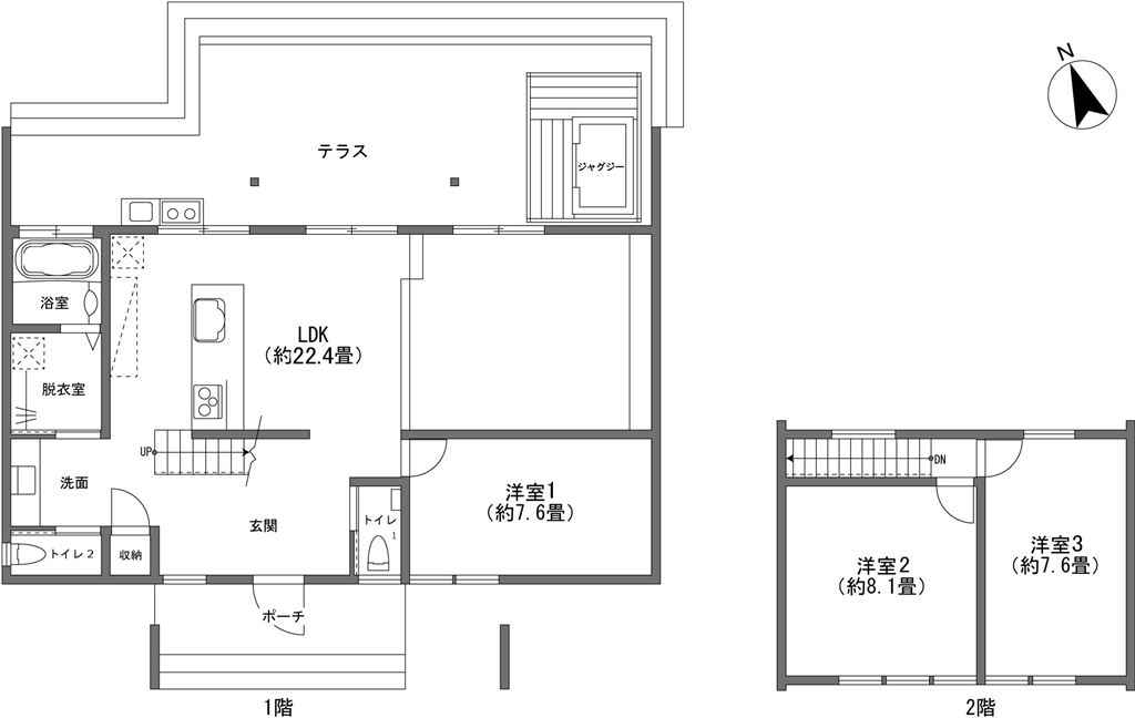 | 建物 | 延床面積 | (公簿)101.84m2(30.80坪) 1階面積/75.35m2(22.79坪) 2階面積/26.49m2(8.01坪) |