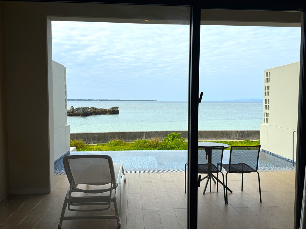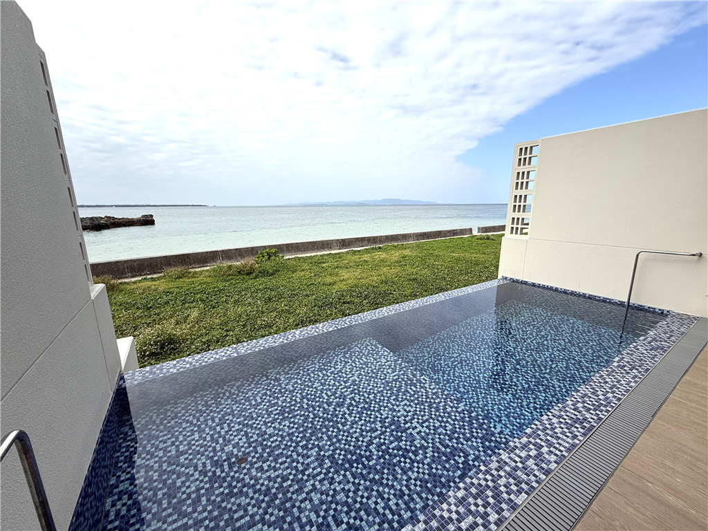 竹富島を望むプライベートプール付きのオーシャンビュー客室