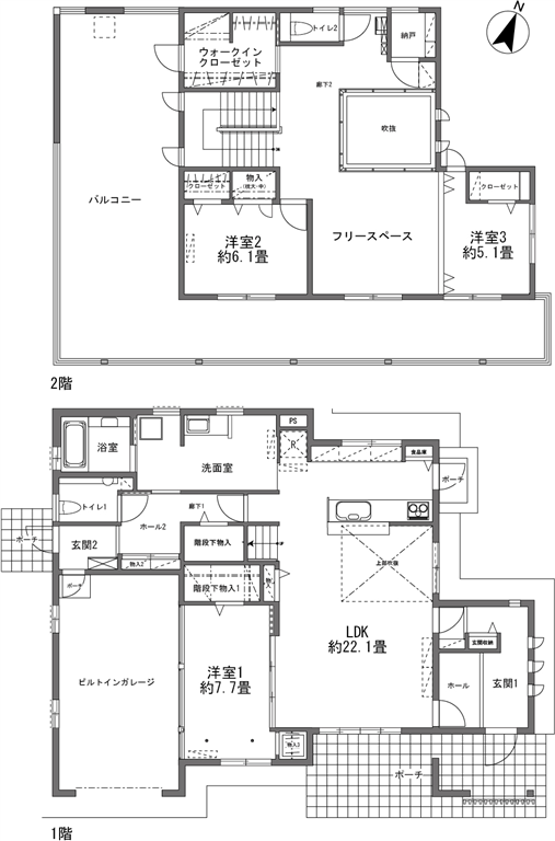 - 間取り:3LDK+フリースペース+納戸+ビルトインガレージ
