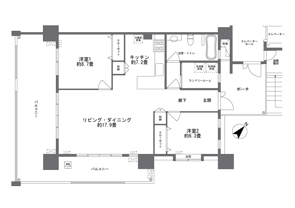 - 間取り:2LDK 専有面積:90.20m2 階/階建:8階/9階建