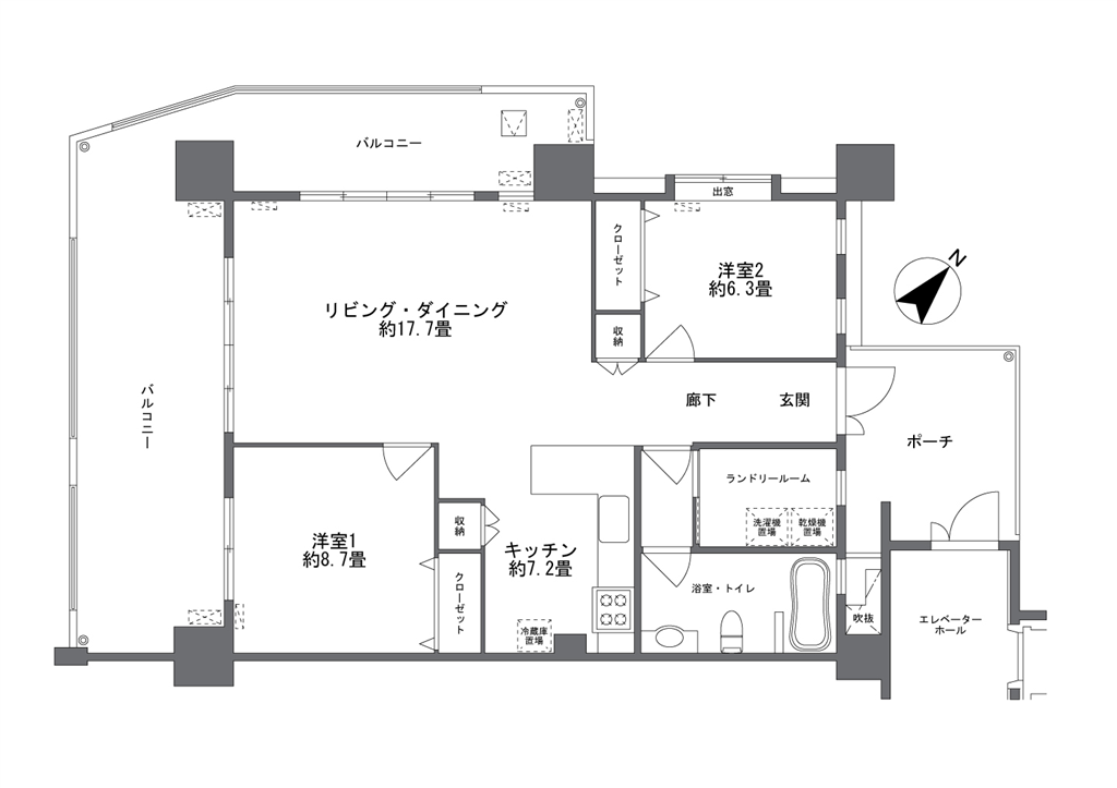 - 間取り:2LDK 専有面積:90.20m2 階/階建:8階/9階建