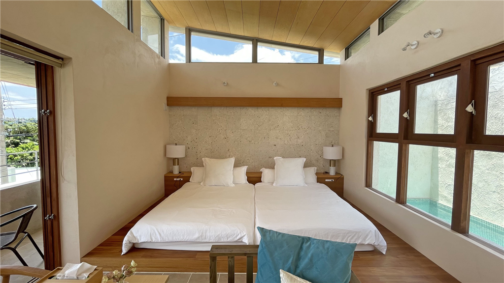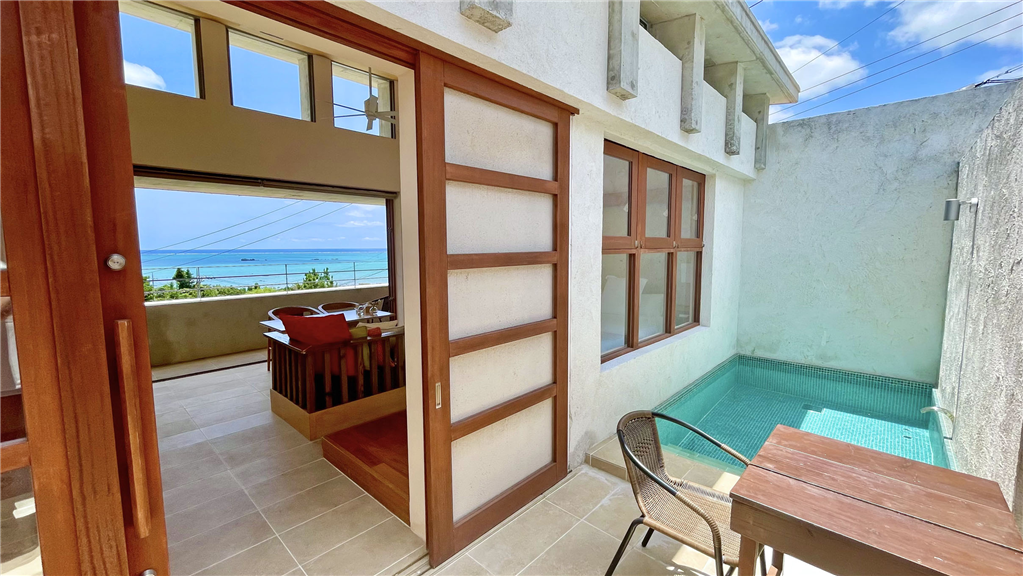 オーシャンビュー物件!令和3年9月築のRC造。露天風呂、プールを備えたお部屋にてホテル営業中。1階自宅。