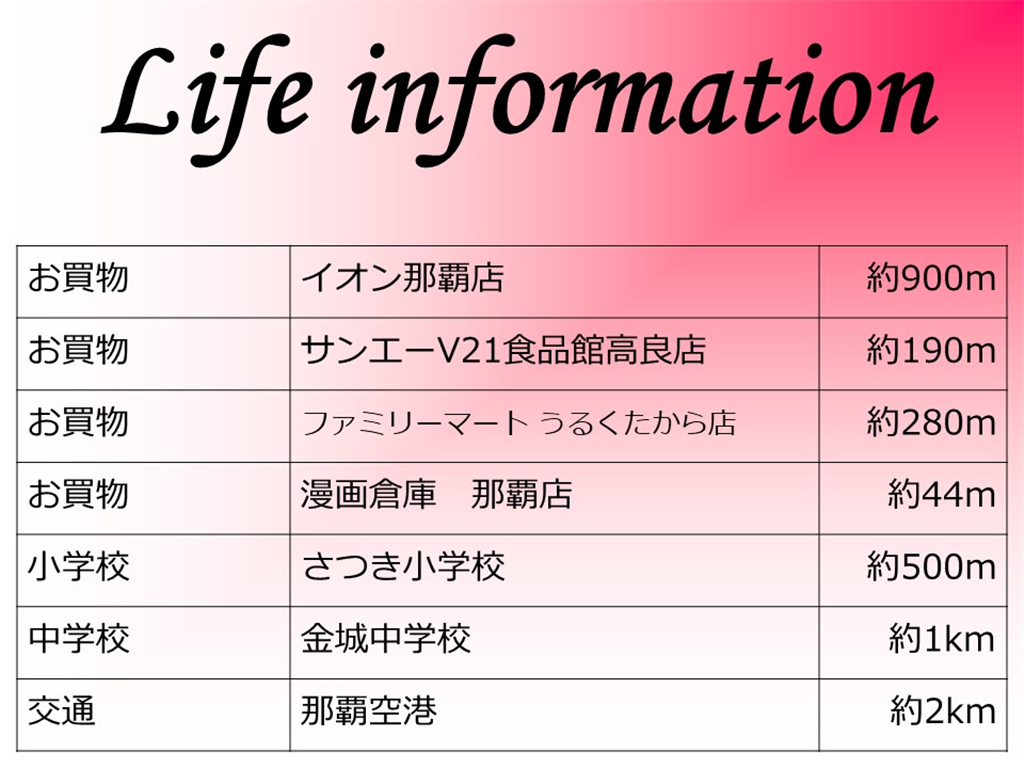 | 交通 | 沖縄都市モノレール線「赤嶺」駅下車、徒歩約4分(約260m) | |