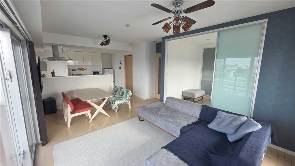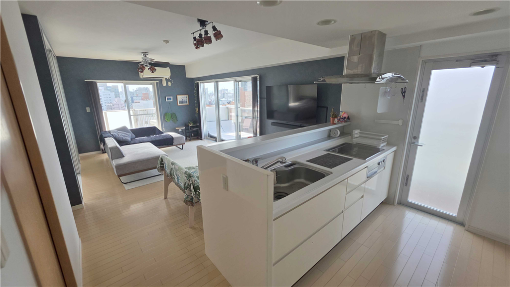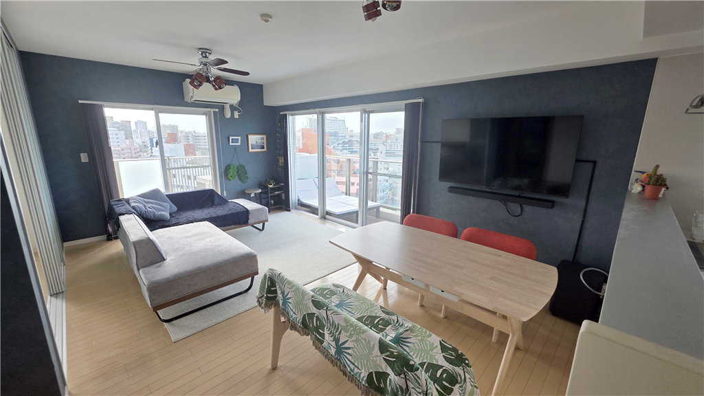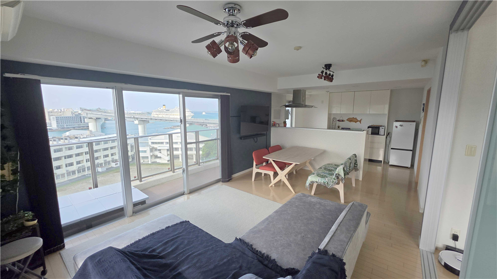 オーシャンビュー2LDK!2面開口のLDKから泊港へ寄港する客船を望みます