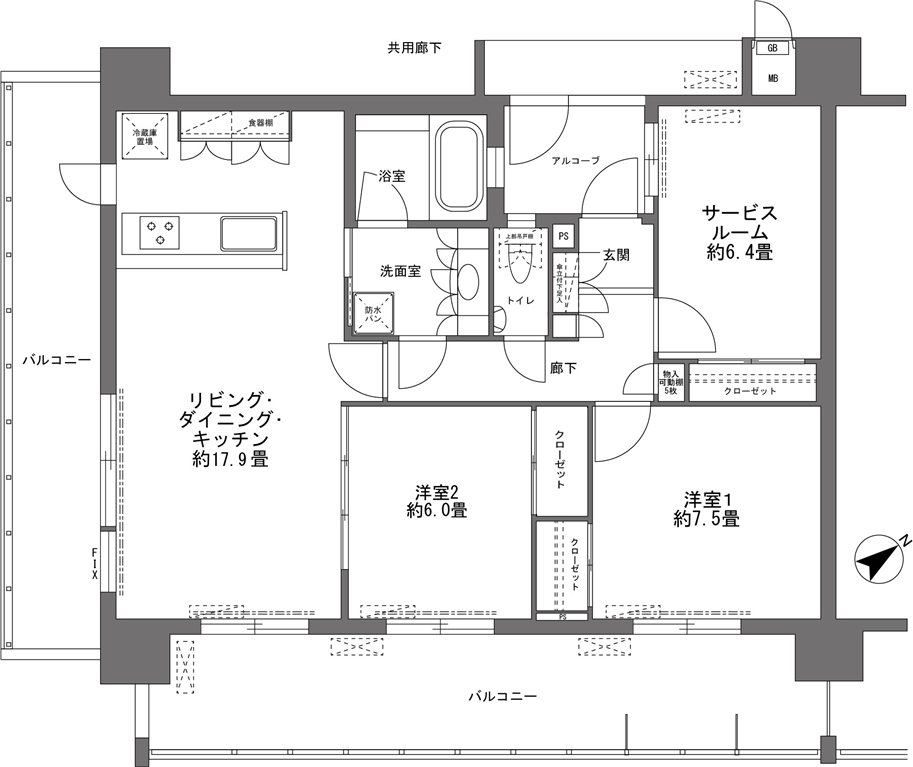 | 備考 | アルコーブ面積/7.54m2(2.28坪) | |