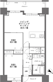 | 建物 | 専有面積 | (壁芯)64.68m2(19.56坪) |