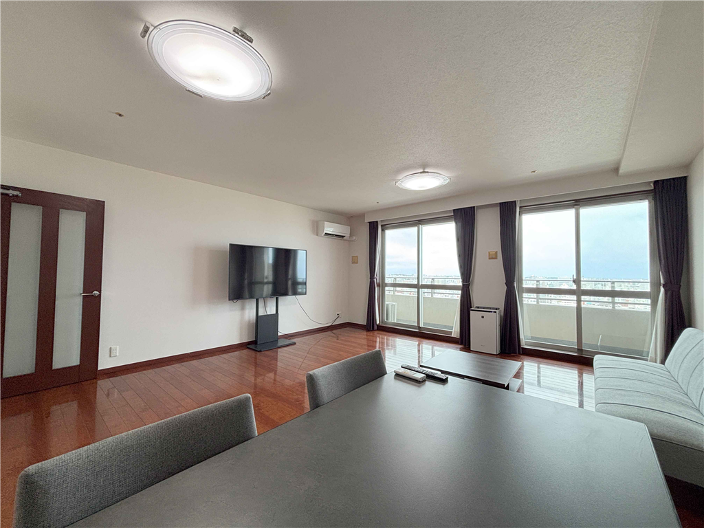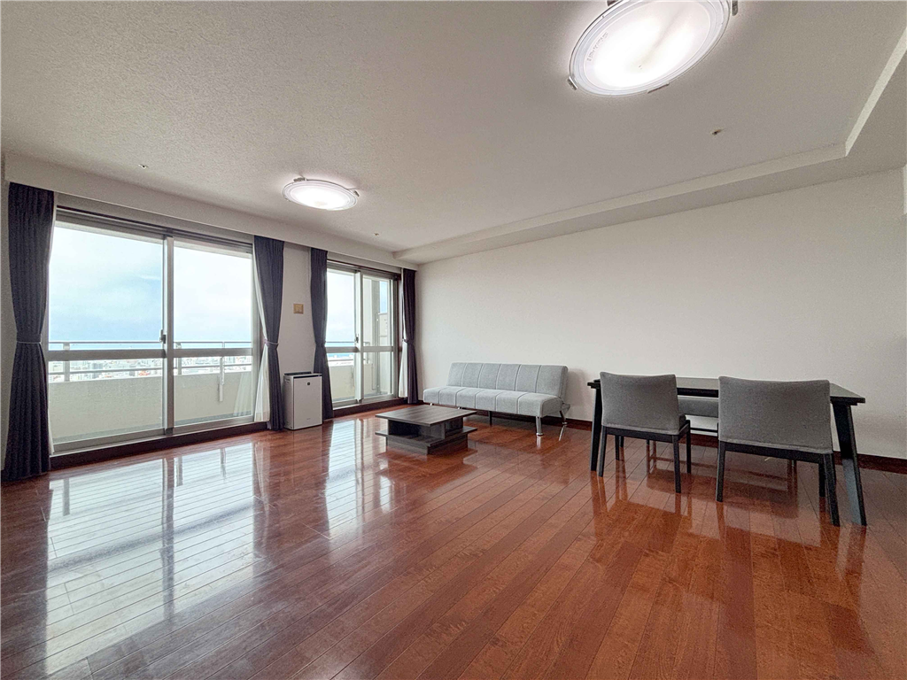 広々リビング・ダイニング(約18.6畳)!那覇市街地や黄金森公園を望む高台にそびえるタワーマンション。コンシェルジュ完備でホテルライクな生活が可能です。