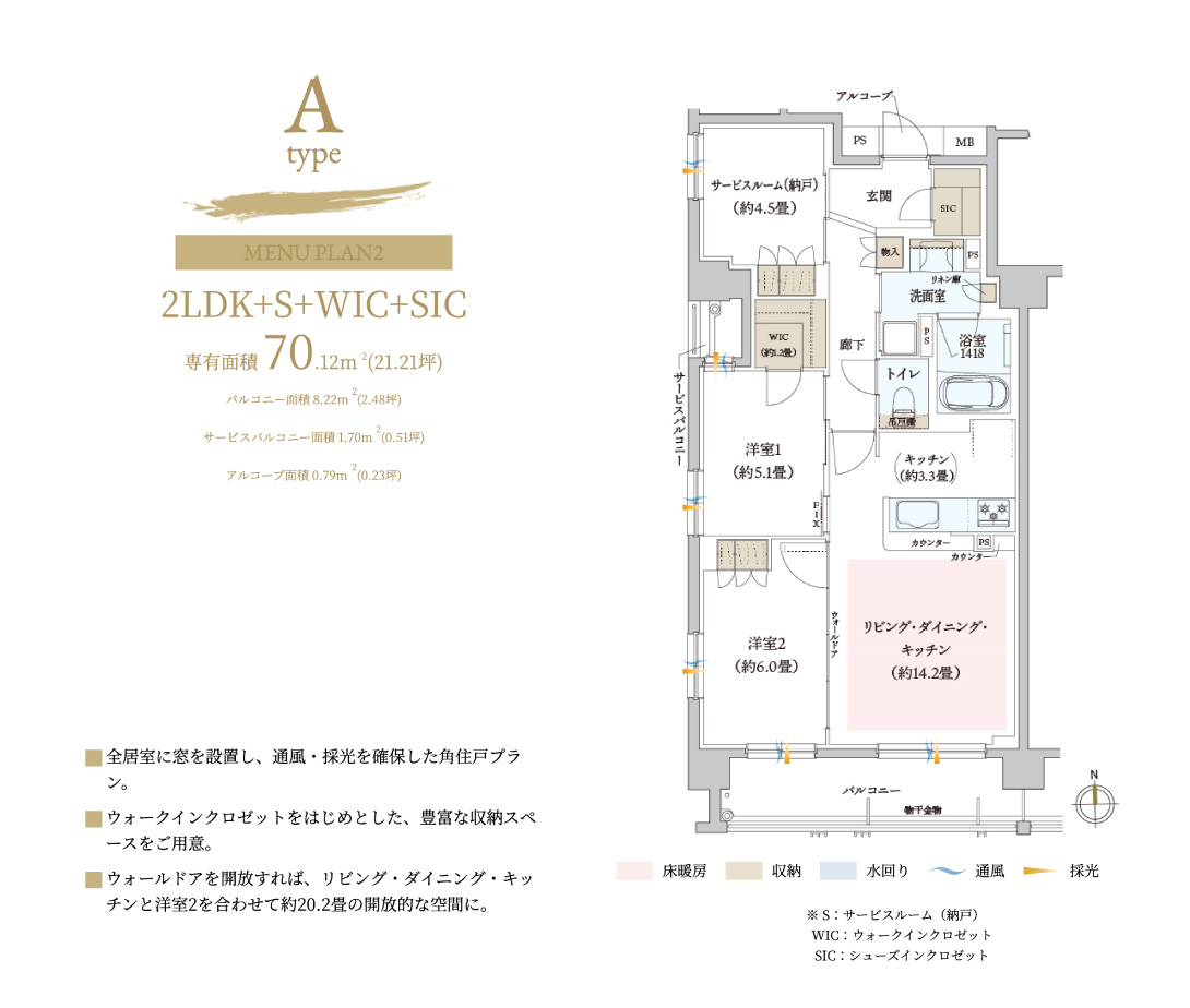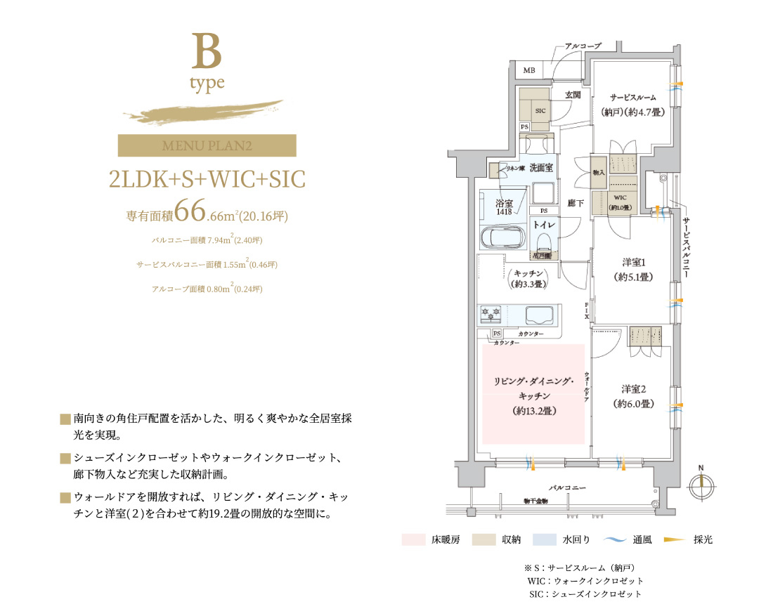 | 間取り | 2LDK+WIC~2LDK+S+WIC+SIC |