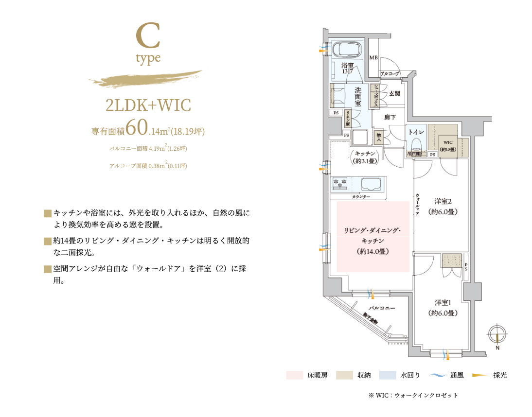 | 住居専有面積 | 60.14㎡~70.12㎡ |
