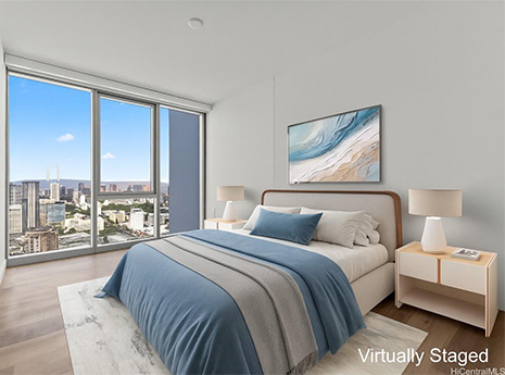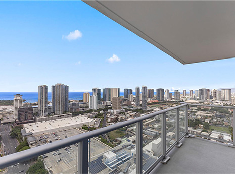 アラモアナショッピングセンターから徒歩約8分(約640m)に位置するケアモク地区の新築コンドミニアム、37階角部屋2ベッドルームの物件です。リビングルームや各部屋からアクセスできるL字型の広々としたラナイからは、海やダイヤモンドヘッド、サンセットをお楽しみいただけます。ハイサッシ窓から自然光が差し込む開放的なリビングルームは、モダンで機能的なインテリアが特徴です。オープンスタイルのキッチンにはクォーツストーンの天板やステンレス製のサムスン社製高級家電、さらに洗濯乾燥機も完備されていて、使い勝手の良い設計です。また、インフィニティプール、ジャグジー、サウナ、フィットネス&ヨガスタジオ、BBQパビリオンなどの充実した共用施設は14階に集約されており、利便性が高く快適な環境で、アクティブなハワイライフを満喫したい方におすすめです。
