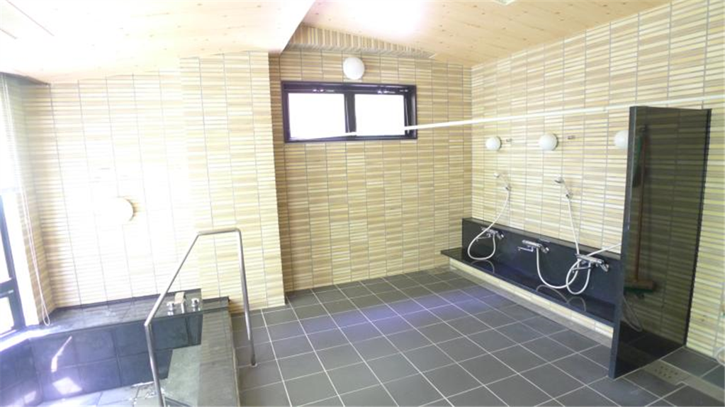 支線道路の突き当りでプライベート感ある、大浴場を完備した保養施設です。